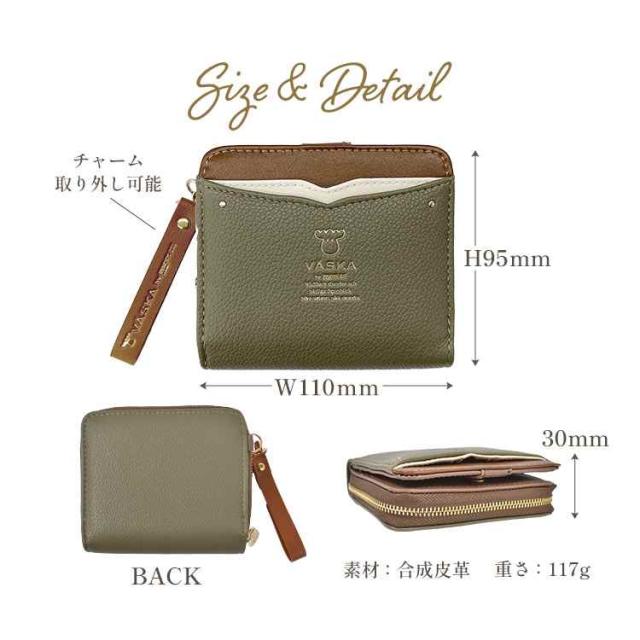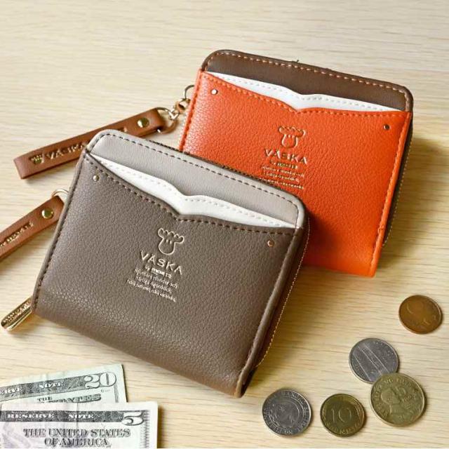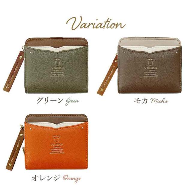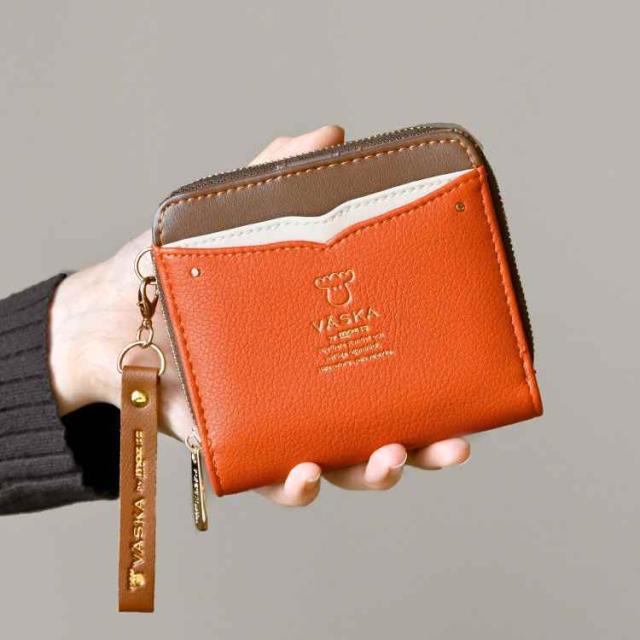 財布 VASKA by moz 二つ折り財布 レディース ブランド MOZ モズ ヴェスカバイモズ ラウンドファスナー 大容量 ミニ 女性 大人 かわいい 婦人財布 バイカラー 北欧 ベスカ 2つ折り カード入れ ポケット 多い コンパクト 主婦 使いやすい 30代 40代 風水 金運 緑 茶色 オレンジ