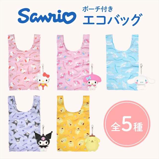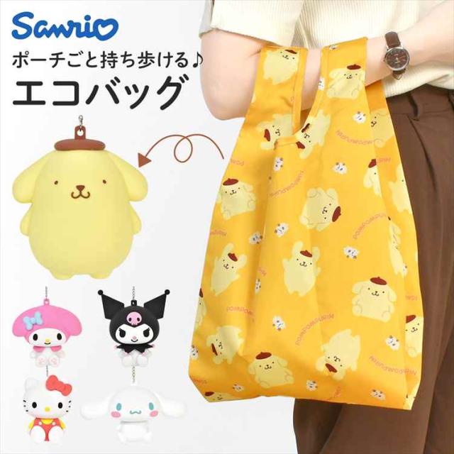 エコバッグ 折りたたみ サンリオ かわいい ポーチ付き 小物入れ 小さめ ハローキティ クロミ マイメロディ シナモロール シナモン ポムポムプリン コンビニ 買い物バッグ トートバッグ サブバッグ 軽量 コンパクト マチ付き ぬいぐるみ キーホルダー ナスカン付き プレゼント