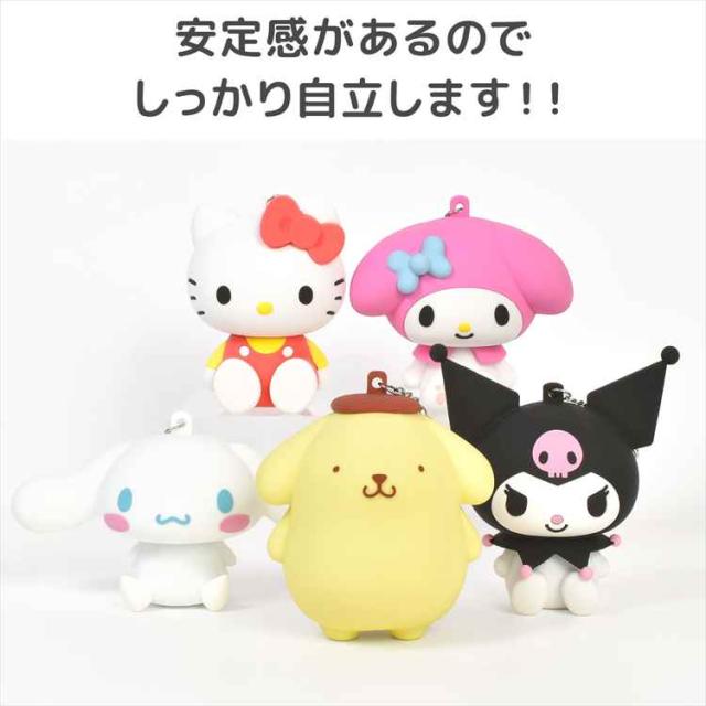 サンリオの人気キャラクターが立体マスコットになった、シリコンポーチ付きエコバッグ。ぷにっとかわいいシリコン素材のポーチは、裏面のファスナー付きでエコバッグをすっきり収納できます。小物入れとしても使えるので、持ち歩きにも便利です。ナスカン付きでリュックやバッグ、ベルトループにも簡単に取り付けOK。存在感のある大きめサイズで、バッグに付ければ目を引くアクセントにも♪ポーチは安定感のある底面でしっかり自立するので、飾って楽しむマスコットとしてもおすすめです。エコバッグは約A4サイズ対応。