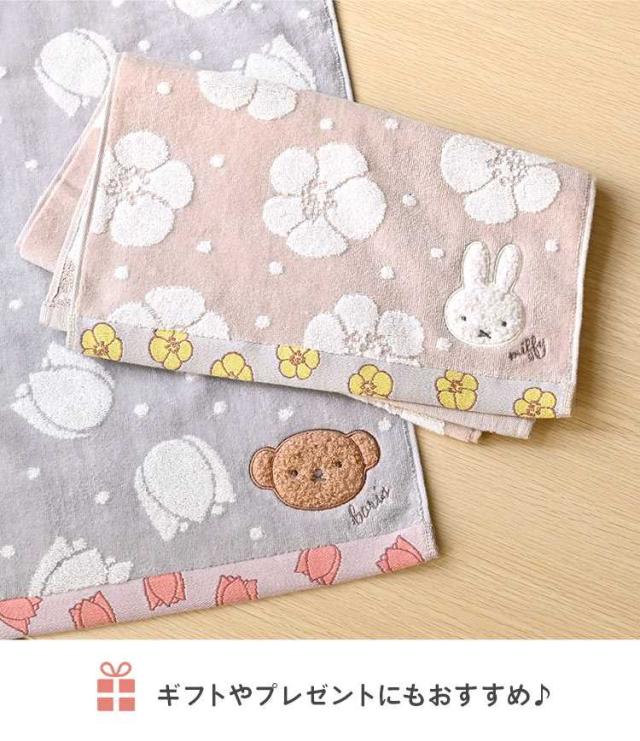 フェイスタオル miffy ミッフィー 綿 100% 厚手 かわいい おしゃれ キャラクター オーガニックコットン 可愛い 吸水 手触り 肌触り ふわふわ もこもこ ワッペン 花柄 アップリケ ワンポイント ボリス うさぎ 抗菌防臭 チューリップ 女性 レディース 顔拭きタオル ギフト 女子
