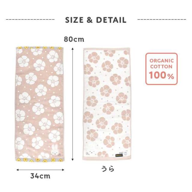 ミッフィーとボリスのもこもこワッペンがポイントのフェイスタオル。オーガニックコットン100%使用で手触りがよく、人と環境にも優しいタオルです。抗菌防臭加工。ギフトやプレゼントにもおすすめです。