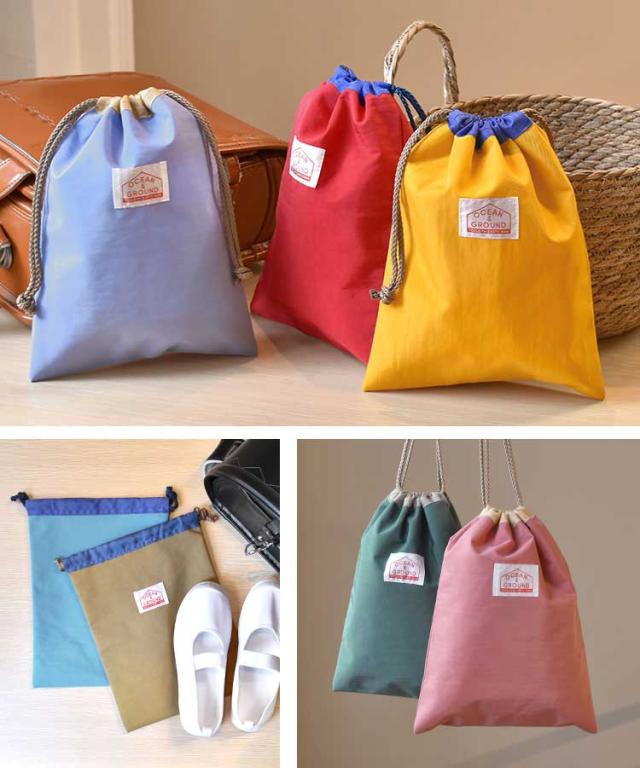巾着袋 m 着替え袋 中 Ocean&Ground オーシャンアンドグラウンド 巾着 保育園 幼稚園 小学生 小学校 入園 入学 エプロン入れ 給食袋 体操着入れ 男の子 女の子 カラフル おしゃれ かわいい 上履き入れ シューズケース 新入学 新学期 通園 入学準備 ナイロン 旅行 無地 大
