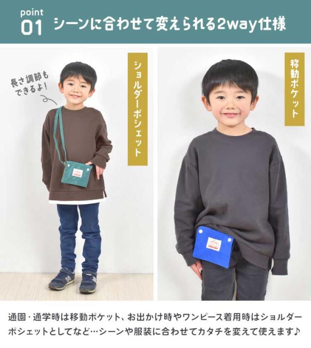 移動ポケット 女の子 クリップ 男の子 ショルダー 2way ティッシュケース ポシェット キッズ 斜め掛け キッズ 小物入れ OCEAN&GROUND オーシャンアンドグラウンド 付けポケット ショルダーバッグ 通園 通学 小学生 ポケットポーチ マルチポーチ ブルー ピンク ラベンダー