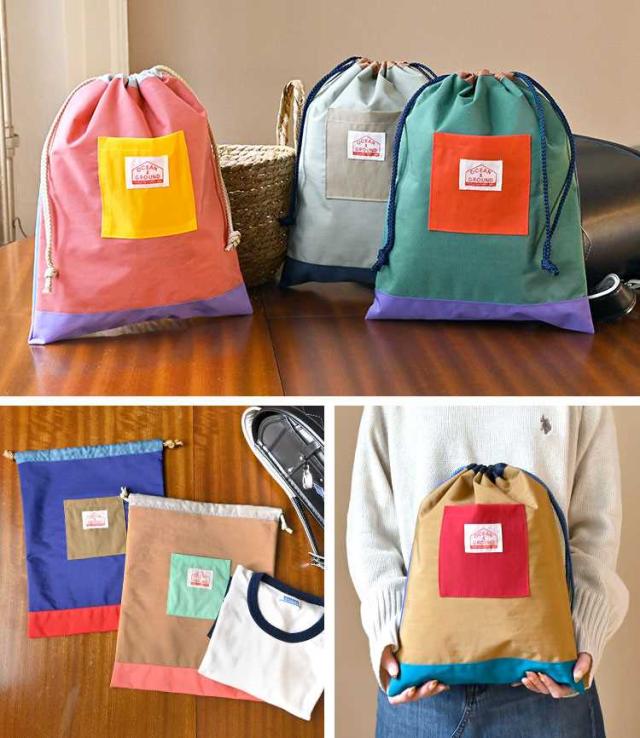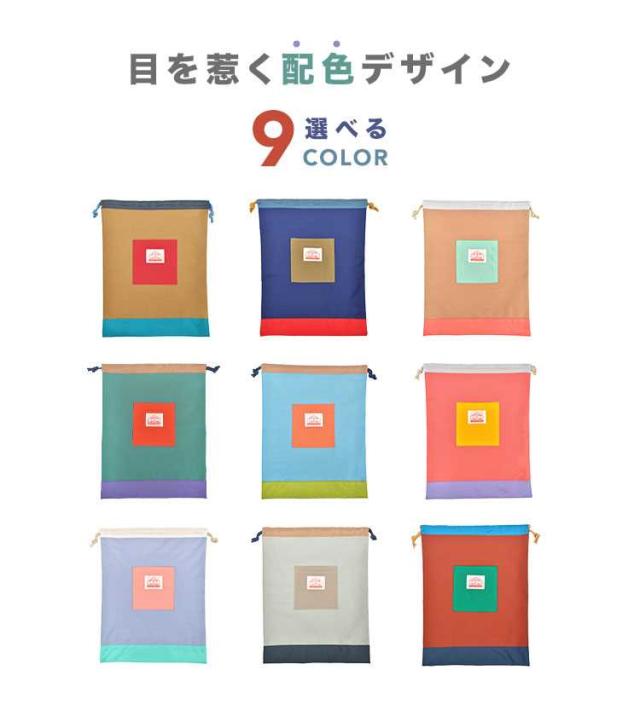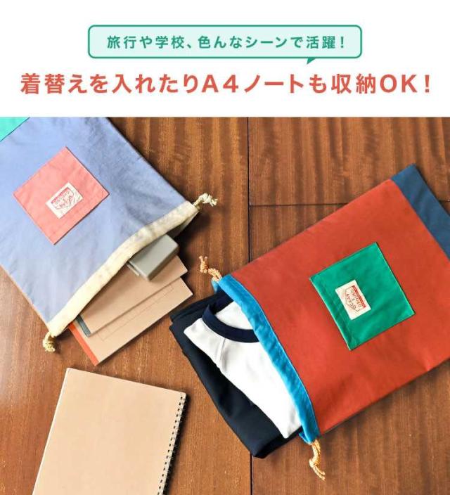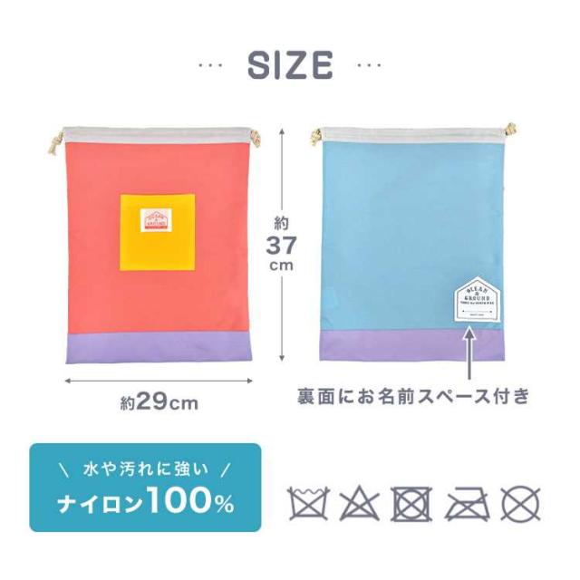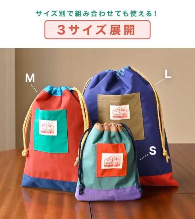 巾着袋 大 L 巾着 着替え袋 体操服袋 Ocean&Ground オーシャンアンドグラウンド カラフル crazy 派手 保育園 幼稚園 小学生 小学校 入園 入学 男の子 女の子 給食袋 エプロン入れ 大きめ バイカラー 配色 かわいい おしゃれ 新入学 入学準備 ナイロン ネームタグ 汚れに強い