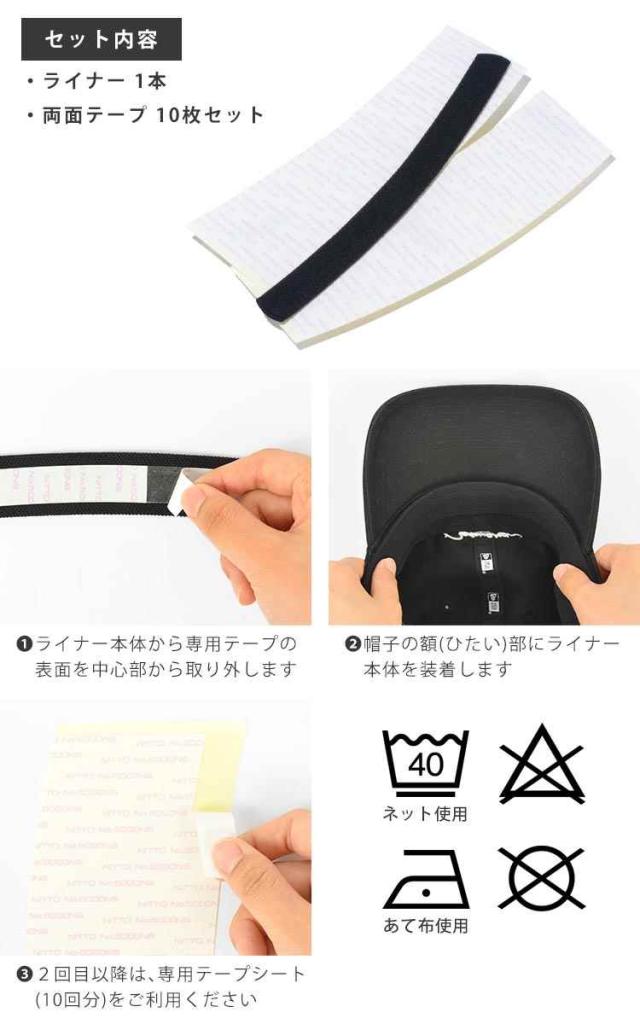 ニューエラ キャップ 帽子 ハット ファンデ 汚れ防止 テープ 汗染み 汗 防止 キャップライナー 制菌 抗菌 消臭 繰り返し使える 洗濯OK NEWERA 小物 グッズ 帽子ケア ケア用品 キャップ&ハットライナー 正規品 男女兼用 レディース メンズ ブラック 黒 ロング 27cm 日本製