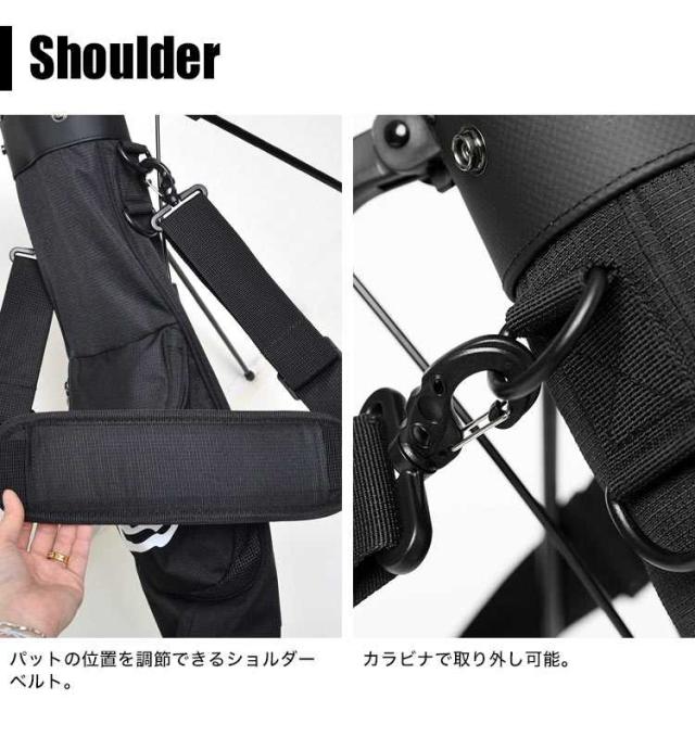 少ない本数(約4,5本)を容易に持ち運ぶことが可能な47インチクラブ対応の自立式クラブケース。パットの位置調整が可能なショルダーストラップ、キャディーバッグの開口部やカートに引っかけることのできるハンドル、NEWERAのフラッグログがプリントされた、汚れが溜まりにくい底メッシュ仕様のポケットなど機能性も◎。練習用やサブバッグとして小回りの効くサイズ感で、ビギナーから上級者まで幅広く使えるアイテムです。
