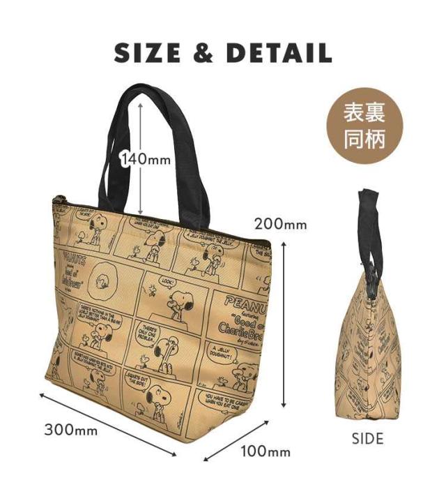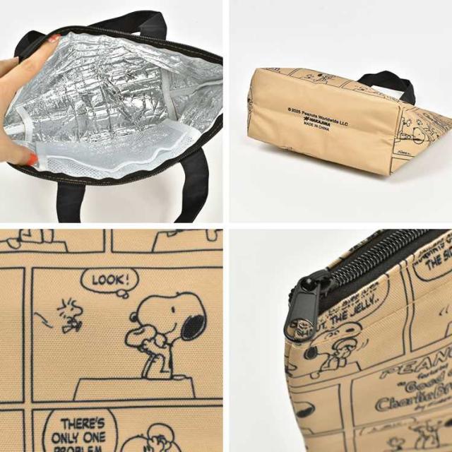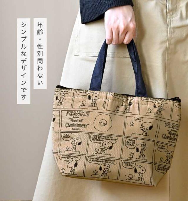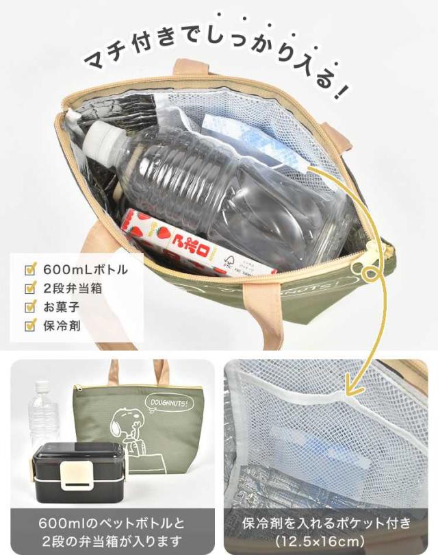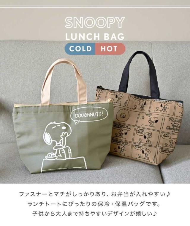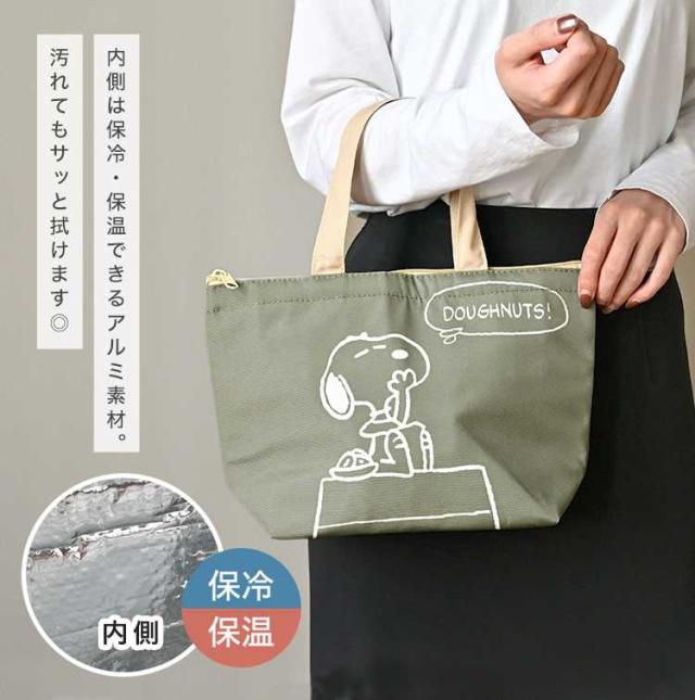 スヌーピー ランチトート バッグ 保冷 かわいい おしゃれ キャラクター SNOOPY 保冷バッグ お弁当 小さめ ランチバッグ お弁当バッグ トートバッグ ファスナー マチ付き 内ポケット 子供 大人 女子 男子 レディース メンズ 高校生 中学生 通勤 通学 シンプル カーキ ブラウン