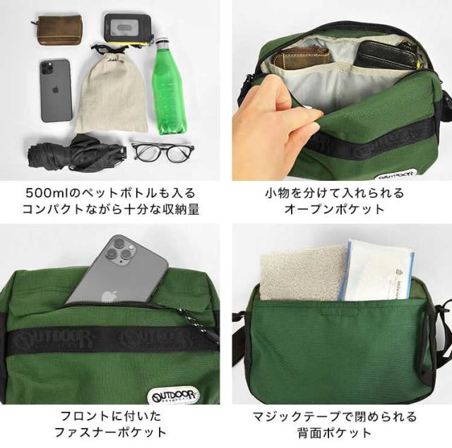 ショルダーバッグ メンズ レディース OUTDOOR PRODUCTS アウトドア プロダクツ 斜めがけ 小さめ 撥水 耐摩擦 ミニショルダー ワンショルダー サブバッグ かばん 鞄 コンパクト ユニセックス 中学生 高校生 大学生 大人 通勤 通学 フェス キャンプ プレゼント ギフト ブラック