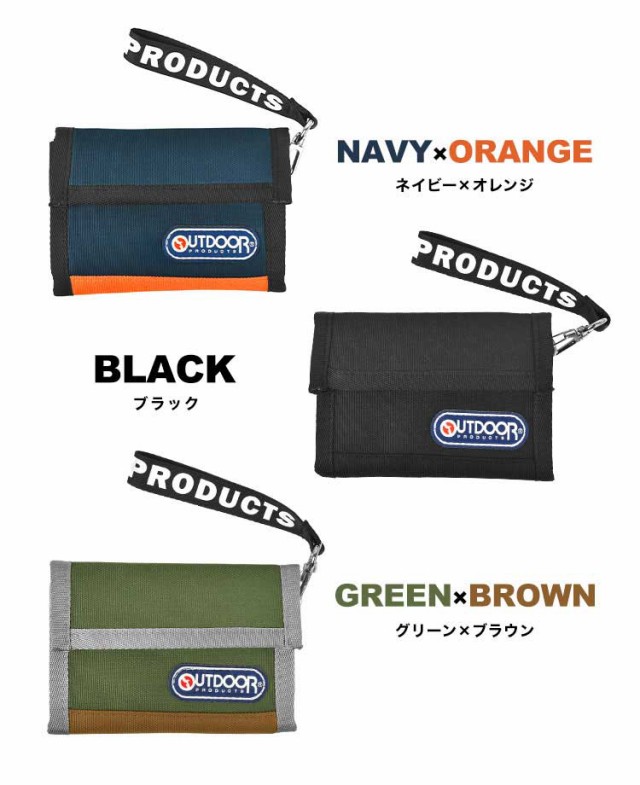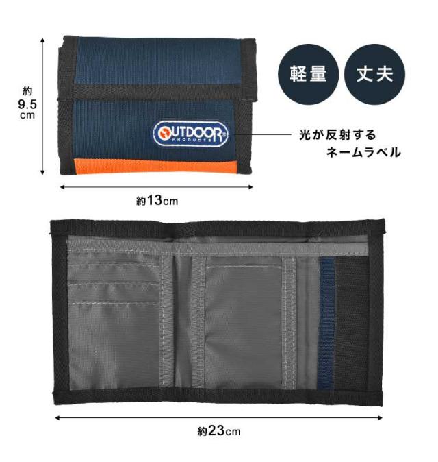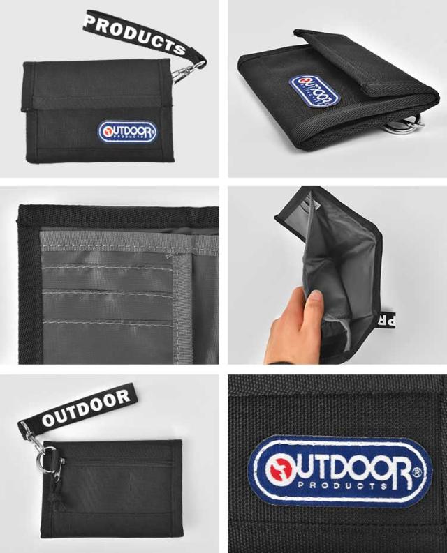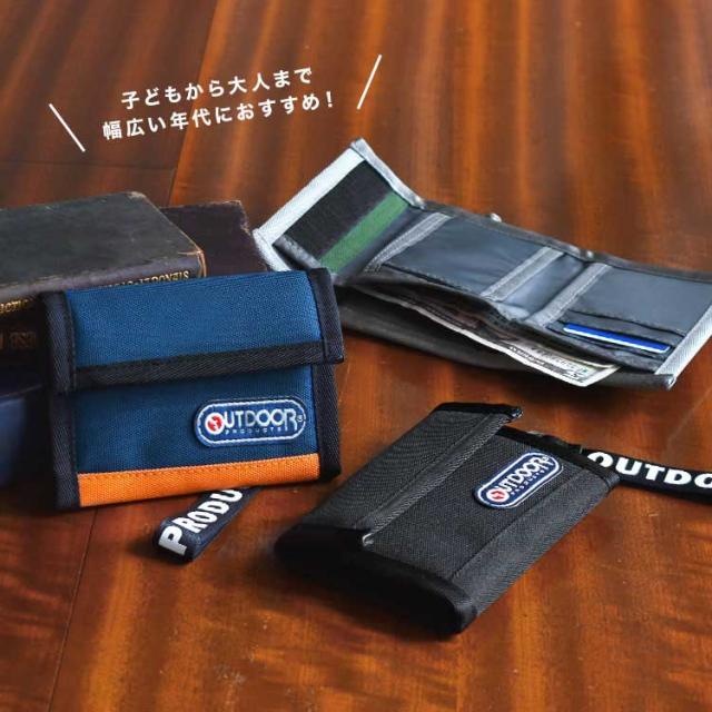 三つ折り財布 メンズ レディース OUTDOOR PRODUCTS アウトドア プロダクツ 男性 女性 ユニセックス 男女兼用 さいふ ミニ財布 コンパクト 小さい 折りたたみ ストラップ カード入れ 小銭入れ 小学生 中学生 高校生 大学生 大人 旅行 プレゼント ギフト ネイビー ブラック