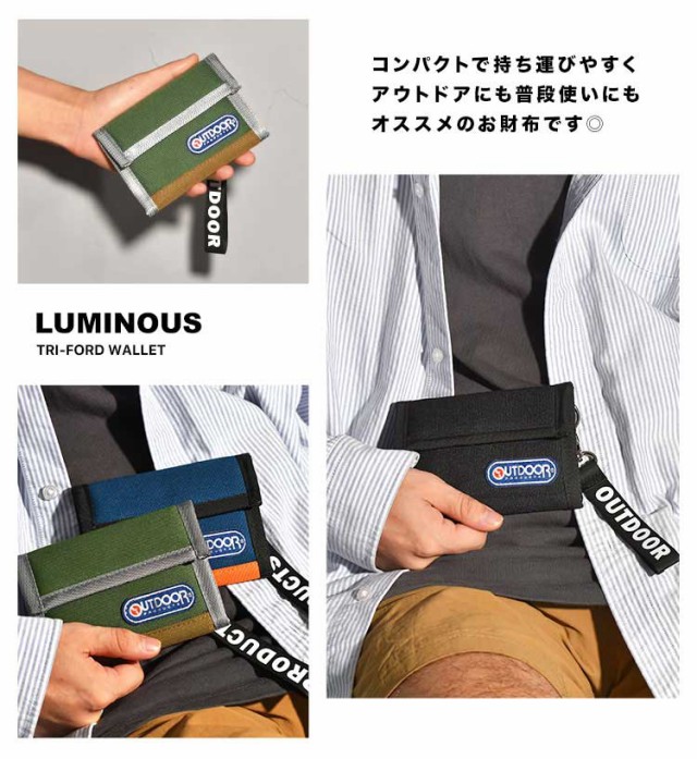 大人気ブランド『OUTDOOR』からアウトドアや通勤通学に おすすめの、コンパクトな三つ折り財布が新登場しました。 光が反射するネームラベルに、取り外しが可能なストラップが付いている為、 お好みに合わせて利用ができます。