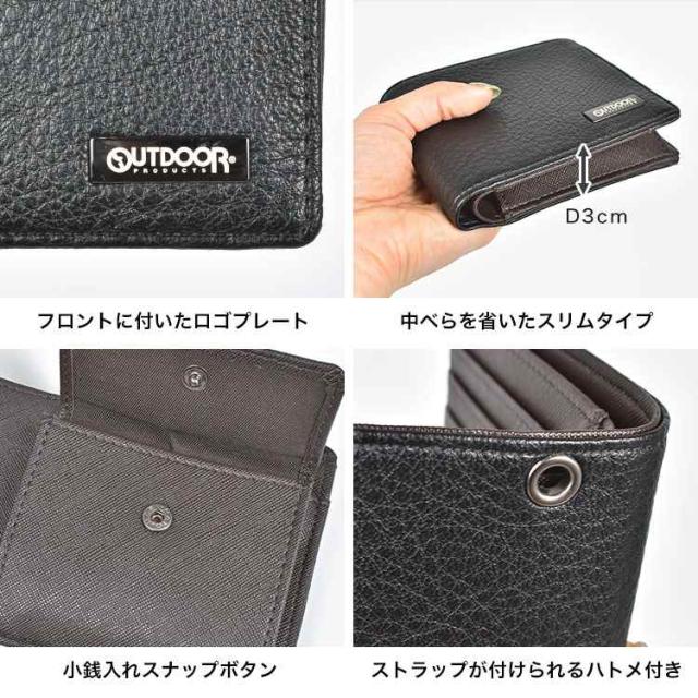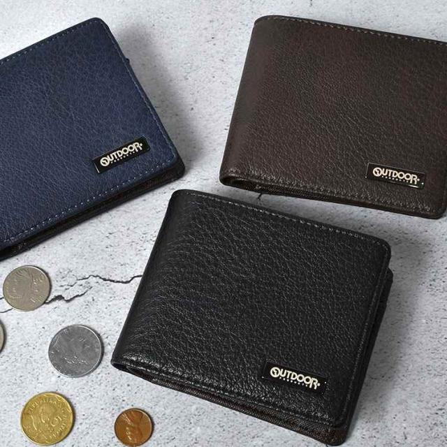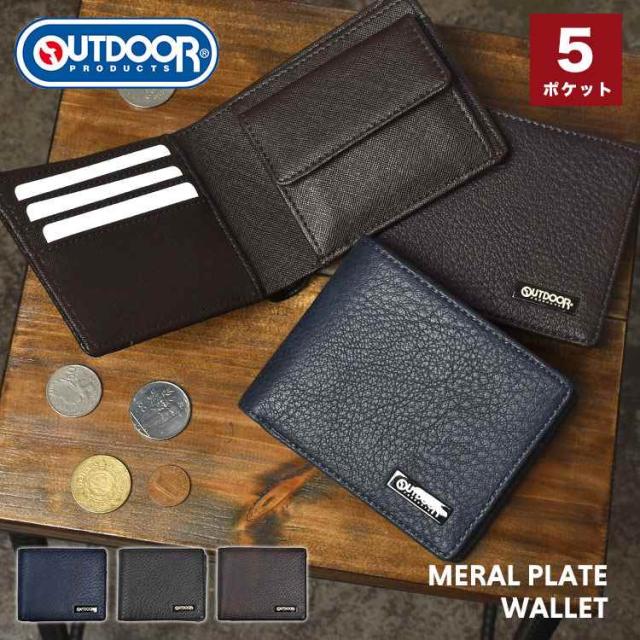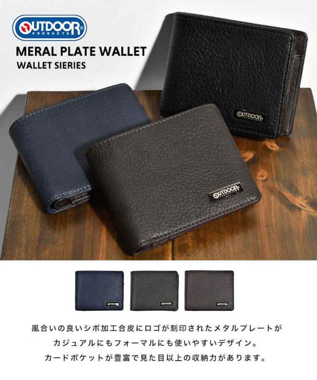 二つ折り財布 メンズ ブランド アウトドアプロダクツ OUTDOOR PRODUCTS 小銭入れあり 大容量 ポケット おしゃれ シンプル 札入れ 2つ サイフ ウォレット ビジネス 男子 中学生 高校生 大学生 大人 合皮 黒 ブラック ネイビー 茶色 ブラウン 無地 1万円以下 プレゼント ギフト