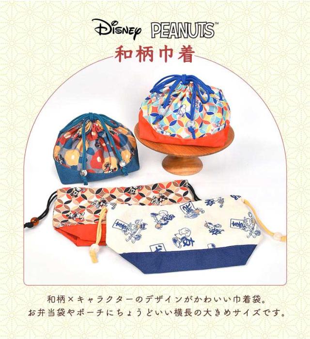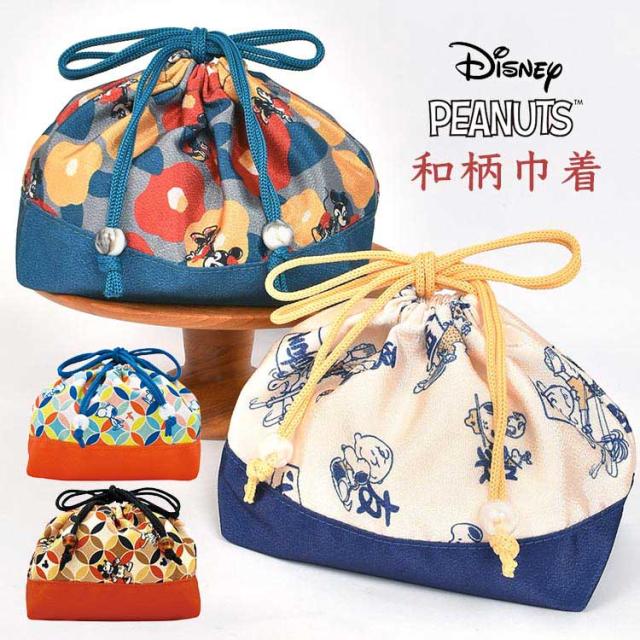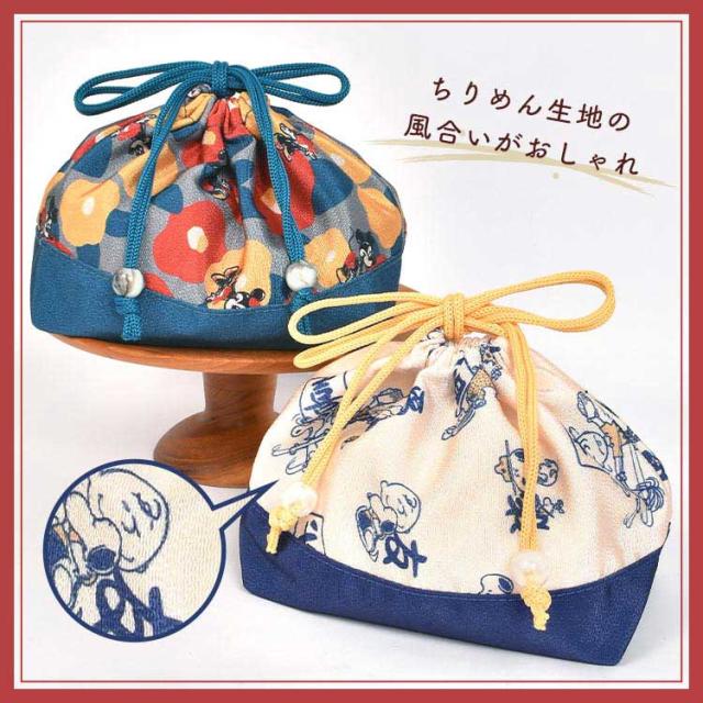 お弁当袋 スヌーピー SNOOPY ディズニー ミッキー ミニー 和柄 巾着 ちりめん 巾着袋 きんちゃく ポーチ かわいい おしゃれ カラフル 和風 柄 女の子 男の子 小学生 中学生 高校生 大人 子供 キッズ ランチ お弁当入れ コップ袋 給食袋 小物入れ キャラクター 浴衣 着物 鞄