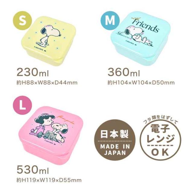 おかずや食べる量によって分けれる、S/M/Lの3サイズ揃ったランチボックス3Pセット。フタを外して電子レンジで温め可能◎食べ終わった後はコンパクトに重ねられて、収納も便利!可愛いスヌーピーデザインで毎日のランチタイムが楽しくなる♪