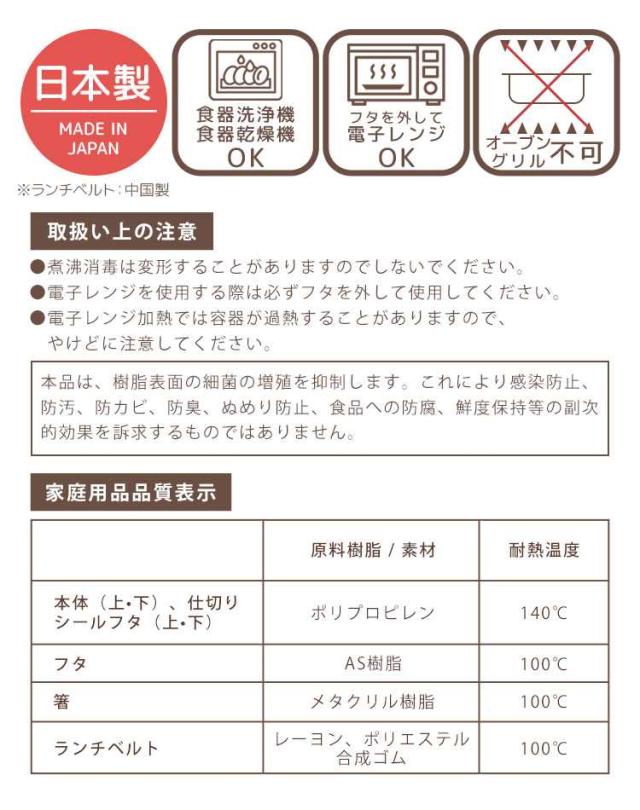 【ランチボックス2段】 たっぷり640ml入るスリムな2段タイプのお弁当箱。カドが丸く、ミゾがないシールフタで洗いやすい仕様になっています。内蓋にしまえるお箸&ランチベルト付きでとっても便利♪子供から大人まで使える落ち着いたカラーとデザインがかわいいランチボックスです。 ■品番 PW-28K ■サイズ 約H84×W177×D76mm ■容量 約640ml ■重量 約210g ■素材 ポリプロピレン、AS樹脂 、メタクリル樹脂 ■生産国 日本(ランチベルト:中国) ■ご注意 ※表記サイズより、多少の誤差があることがございます。 ※商品の画像はできる限り実物に近づけるよう配慮しておりますが、お使いのモニターやご覧になる環境によりましてはカラーの見え方に差が出る場合がございます。ご了承くださいませ。 ※メール便発送の場合タグを切ってパッケージから出して発送する場合があります。ご了承くださいませ。 レビュー商品の評価: お店の情報お店の評価: 連絡・応対 - 配送スピード - 梱包 - 注目の特集 | |||||||||||||