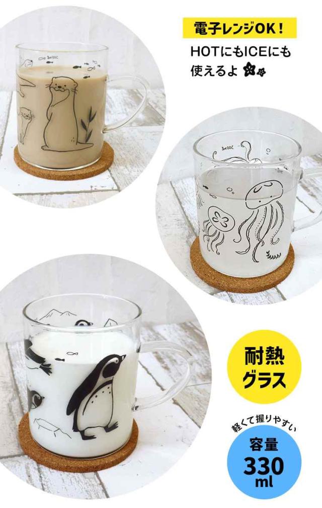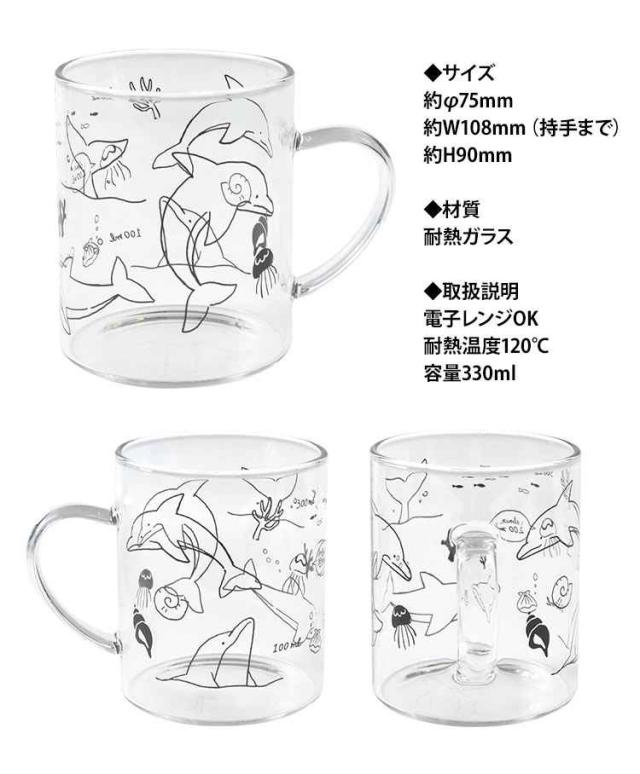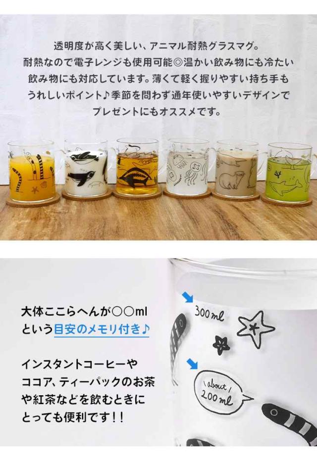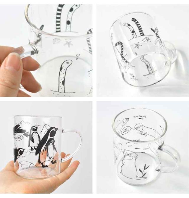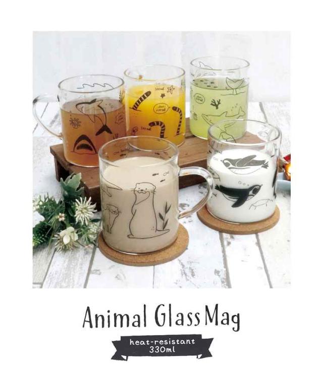 グラスマグ マグカップ アニマル ガラス 動物柄 かわいい グラス 持ち手付き 電子レンジOK 耐熱 330ml 透明 コップ カップ クリア プレゼント 誕生日 ギフト 贈り物 食器 海アート チンアナゴ イルカ サメ カワウソ ペンギン 電子レンジ対応 軽量 キッチン用品 おしゃれ