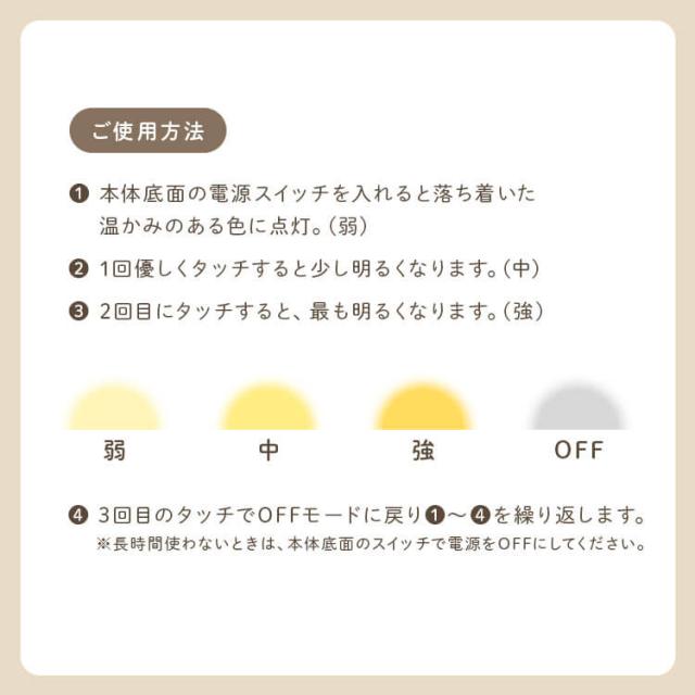 もちっとやわらかいシリコン製のルームランプは、温もりのある優しい光でお部屋を包み込みます。USBケーブルで簡単に充電できるので、手間いらず。読書や間接照明、授乳ランプとしても大活躍です。叩くだけで点灯するので、使い方もとっても簡単!お部屋の雰囲気をぐっと和らげてくれるこのランプで、リラックスタイムを楽しんでみませんか?