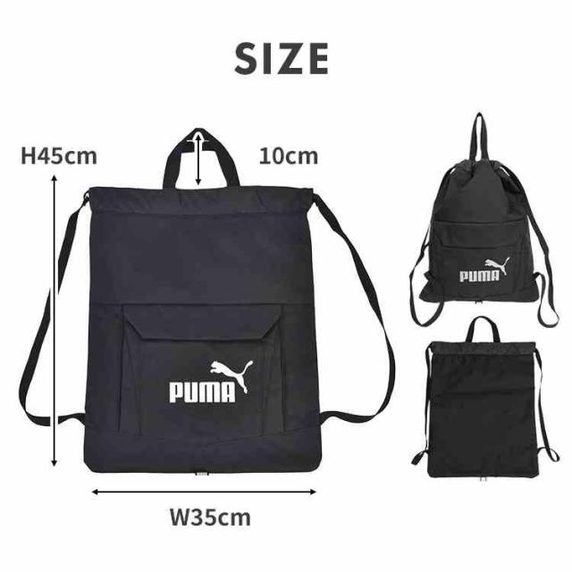ナップサック PUMA プーマ 男の子 キッズ 子供 メンズ スポーツ ブランド ジュニア 小学生 中学生 女の子 男子 女子 リュック ジムサック 巾着袋 体操服入れ 体操着入れ 体操服袋 着替え入れ ポケット 反射材付き シンプル 黒 ブラック 紺 ネイビー 軽い 入学準備 プレゼント