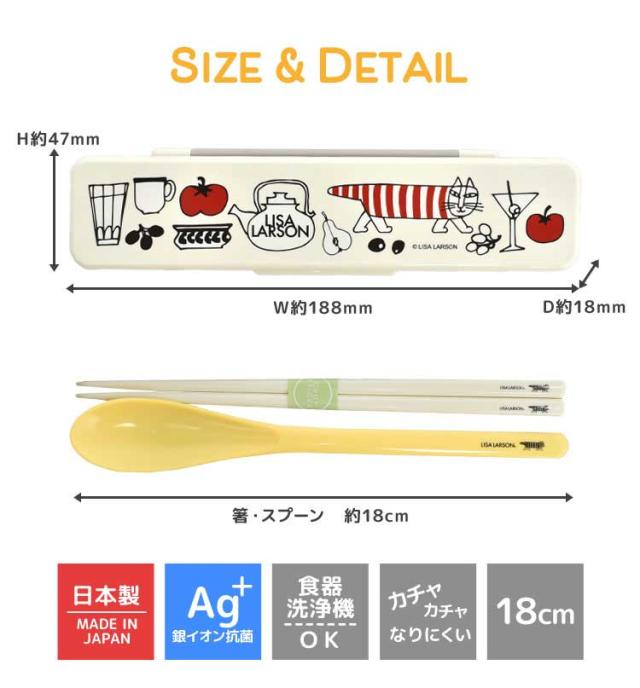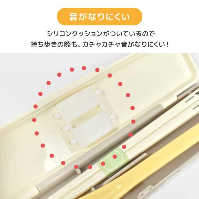 シリコンクッションが付いていて、持ち運びの際にカチャカチャ音が鳴りにくいお箸とスプーンのコンビセット!食器洗浄機対応で、ママやパパも嬉しい◎お揃い柄のランチグッズと合わせるのもオススメ♪安心の日本製でギフトにもピッタリです!