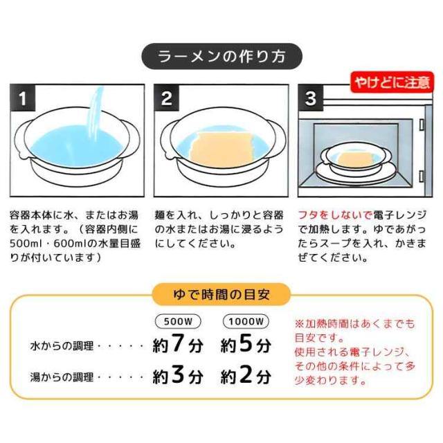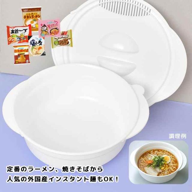 電子レンジで手軽に即席麺が調理できる、即席ラーメンメーカー♪調理後はそのまま器に使えるから洗い物も少ない! 火を使わないから安心安全☆ 焼きそばや、つけ麺向けに便利な湯切り口付き。 ※電子レンジで加熱の際はフタを外してください。 フタは湯切り用です。 ■ゆで時間の目安■ 水からの調理:約7分 お湯からの調理:約3分 ※あくまで目安です。