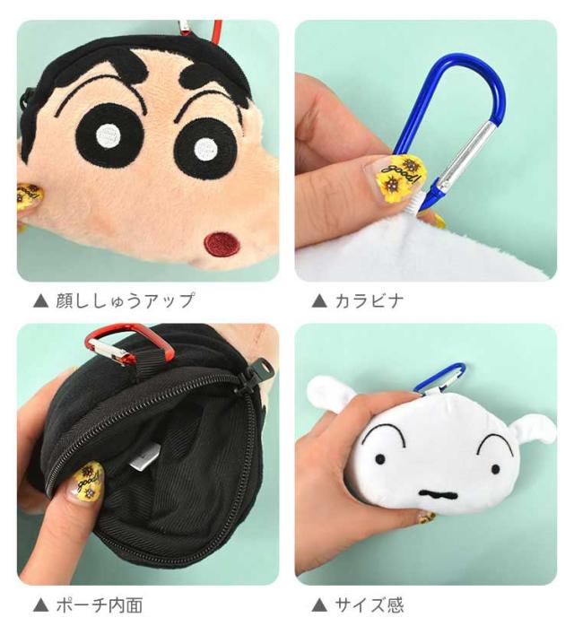 マスコット キーホルダー ポーチ クレヨンしんちゃん カラビナ付き ぬいぐるみポーチ 小物入れ おしゃれ かわいい キャラクター しんちゃん シロ ぶりぶりざえもん グッズ フェイス リュック バッグ ぬいぐるみ ストラップ 雑貨 高校生 中学生 通学 プレゼント ギフト 誕生日