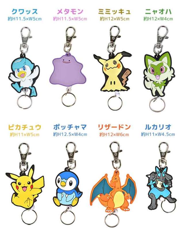 キーホルダー ポケモン かわいい 子ども キーリング リール ラバスト 鍵 小学生 通学 ピカチュウ イーブイ リザードン ゲンガー ニャオハ ワッカネズミ クワッス ポッチャマ ルカリオ ミミッキュ メタモン マリル トゲピー ピィ グレイシア ガブリアス カビゴン エーフィ