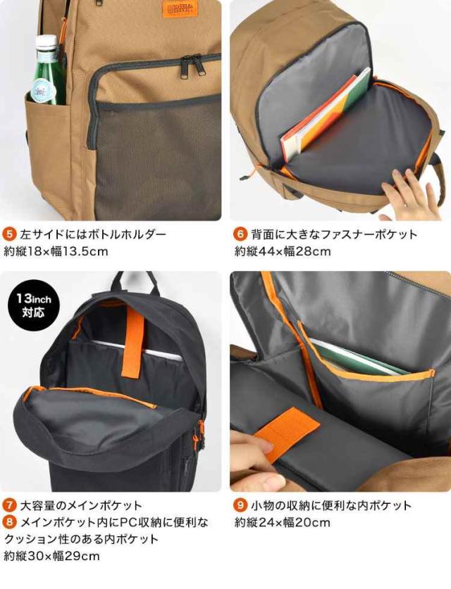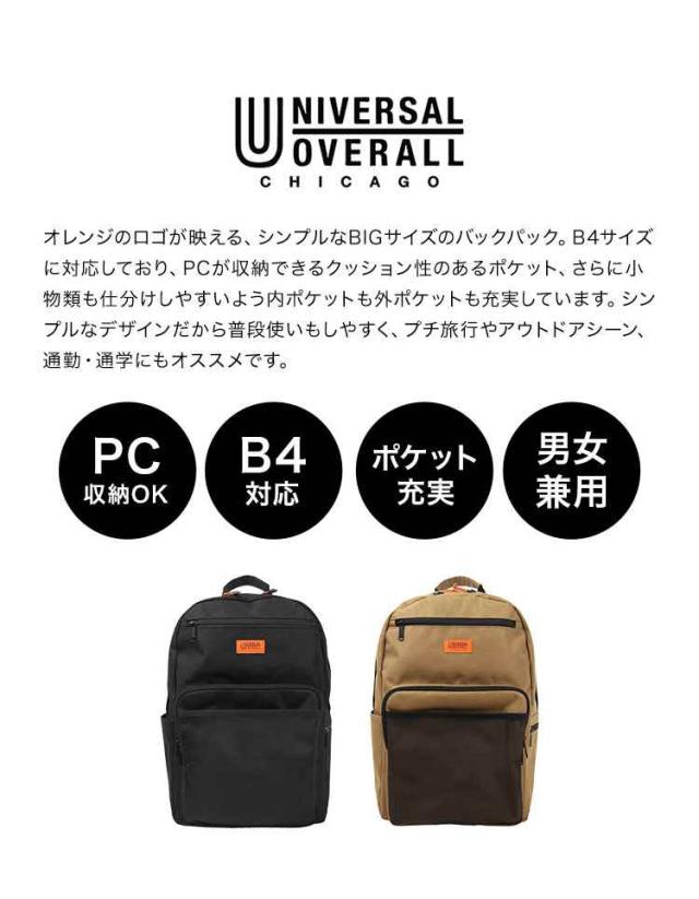 リュック 大容量 UNIVERSAL OVERALL ユニバーサルオーバーオール バッグ リュックサック レディース 大容量 A4 30L メンズ リュック 黒 茶色 高機能 PC収納 ポケット多い オレンジ リュック シンプル デイパック バックパック 通勤 通学 大きめ マザーズバッグ おしゃれ