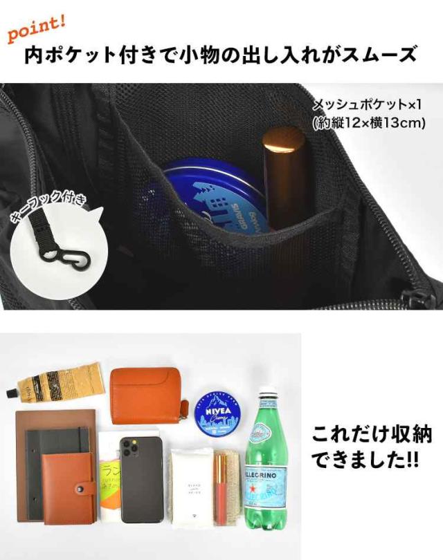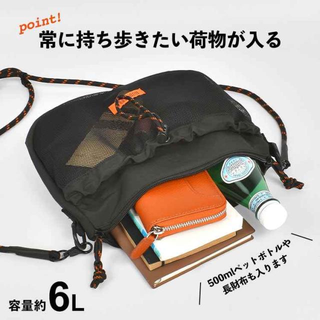 軽量で収納力抜群のショルダーバッグ。メッシュポケット付きで小物の出し入れがスムーズ。調整可能な太めのロープストラップと耐久性のあるナイロン素材で、デイリーからアウトドアまで幅広く活躍でき、シンプルながら機能的なデザインが魅力のアイテムです。