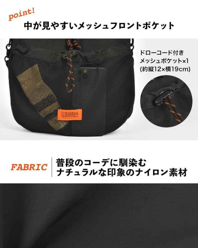 ショルダーバッグ ユニバーサルオーバーオール UNIVERSAL OVERALL UVO-195 レディース 斜めがけ 大人 女性 軽量 ナイロン 大容量 A5 薄型 サコッシュ おしゃれ シンプル ブラック 黒 グレー ブラウン 茶 多機能 ペットボトル 入る 通勤 通学 旅行 サブバッグ 散歩 フェス