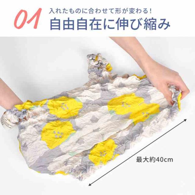 入れたものに合わせて伸び縮みする、可愛い柄のしぼりバッグ。