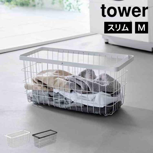 山崎実業 ランドリーワイヤーバスケット スリム M tower 10001 10002 ホワイト ブラック 公式 ランドリーバスケット ワイヤーバスケット 洗濯カゴ おしゃれ 大容量 ランドリー収納 洗濯かご スリム ランドリーボックス シンプル スチール 脱衣 通気性 白 黒
