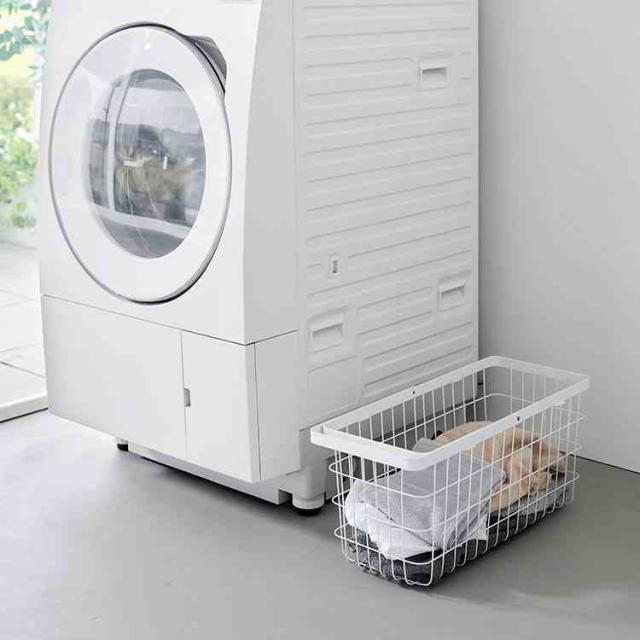 スリムな設計なので、洗濯機の横などちょっとした隙間にもすっきり収まるMサイズのランドリーバスケットです。持ち運びに便利なハンドル付きで、使わないときはハンドルを倒して収納できます。バスケットの高さはドラム式洗濯機の扉に干渉しない設計のため、洗濯物の出し入れもスムーズです。