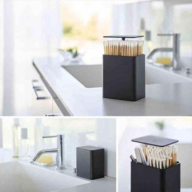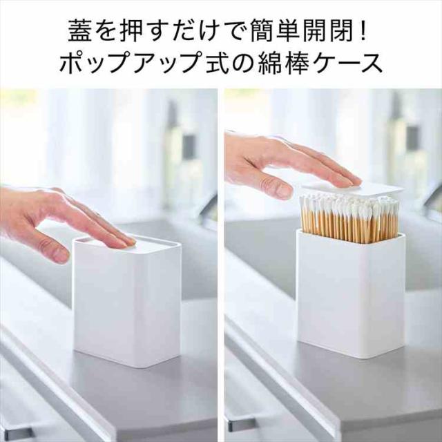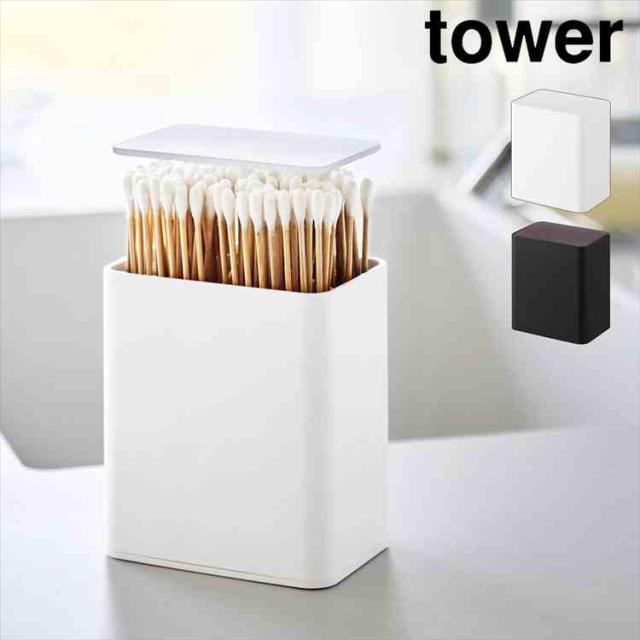 山崎実業 ポップアップ式綿棒ケース タワー 公式 tower 10284 10285 ホワイト ブラック 綿棒ケース 綿棒入れ 小物入れ 蓋付き フタ付き 簡単プッシュ 爪楊枝入れ 爪楊枝ケース 小物収納 半透明 取り出しやすい めんぼう 白 黒 シンプル おしゃれ スタイリッシュ プッシュ式
