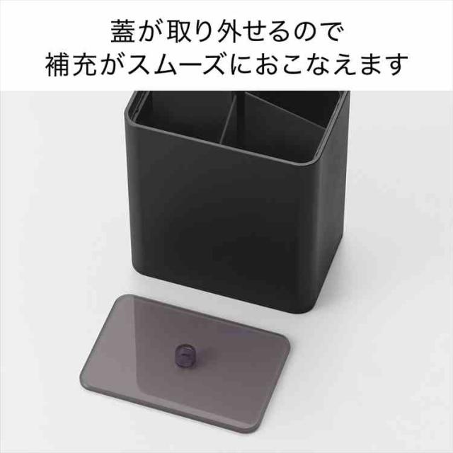 ![]() ![]() 蓋を押すだけで簡単設置!ポップアップ式の綿棒ケース 蓋を押すと収納ポケットが自動的に持ち上がるポップアップ式のケース。両手が使えない場面でも、片手でサッと綿棒を取り出せて便利です。綿棒の先端に触れずに取り出せるので衛生的です。 ![]() 取り出しやすくスッキリ収納できる仕切り付き 収納ポケットは4つに仕切られているので取り出しやすく、種類の違う綿棒を分けて収納することもできます。綿棒の他に、爪楊枝やフロス、爪切りなどのケア用品もスッキリ収納できて便利です。 ![]() 蓋が取り外せるので補充がスムーズにおこなえます ![]() 蓋が取り外せるので、綿棒や爪楊枝などの補充がスムーズにおこなえます。半透明の蓋だから残量が一目でわかり、補充のタイミングを逃しません。 ![]() ![]() ![]() ![]() ![]() ![]() ![]() ![]() ![]() Details 【ポップアップ式綿棒ケース】 蓋を押すだけの簡単開閉で、綿棒が取り出しやすいポップアップ式ケースです。綿棒の先端に触れずに取り出せるので衛生的。半透明の蓋で残量がわかりやすく、取り外しも可能で補充もスムーズ。仕切り付きなので、ケア用品を種類ごとにスッキリ収納できます。 ブランド名 tower / タワー JAN 4903208102841 / 4903208102858 品番 10284 / 10285 サイズ W9.6×D6.6×H10.8cm [ 内寸 ] 収納ポケット:H8.2cm 対応サイズ 収納数の目安:綿棒200本 重量 約165g 素材 本体:ABS樹脂・ポリプロピレン クッション:シリコーンゴム 生産国 中国 ご注意 ※表記サイズより、多少の誤差があることがございます。 ※商品の画像はできる限り実物に近づけるよう配慮しておりますが、お使いのモニターやご覧になる環境によりましてはカラーの見え方に差が出る場合がございます。ご了承くださいませ。 関連キーワード 山崎実業 ポップアップ式綿棒ケース タワー 公式 tower 10284 10285 ホワイト ブラック 白 黒 綿棒ケース 綿棒入れ 小物入れ 蓋付き フタ付き 簡単プッシュ 爪楊枝入れ 爪楊枝ケース 小物収納 半透明 取り出しやすい めんぼう シンプル おしゃれ スタイリッシュ プッシュ式 きれいに収納 簡単取り出し ワンタッチ ポップアップ マルチ 卓上 食卓 洗面台 小物 ケース 綿棒ホルダー 楊枝ケース レストラン カフェ 整理整頓 コンパクト 多機能 雑貨 北欧 オシャレ お洒落 モノトーン スマート 引越し 引っ越し 新築 結婚 祝い マンション アパート 一人暮らし ひとり暮らし 1人暮らし 二人暮らし ふたり暮らし 2人暮らし ファミリー 家族 一戸建て 戸建 賃貸 山実 やまじつ ヤマジツ やまざきじつぎょう たわー towerシリーズ ブランド yamazaki Tower Cotton Swab Case With Pop-Up Lid | |||||||||
