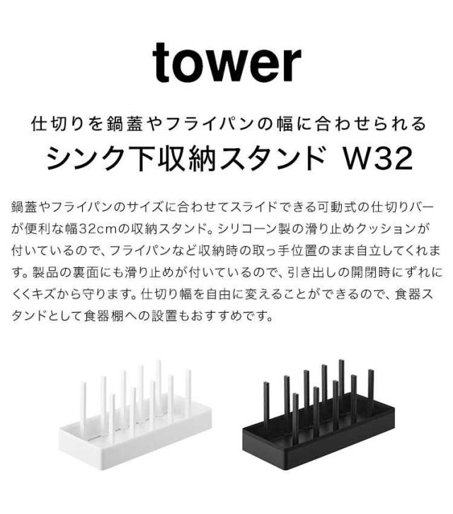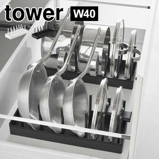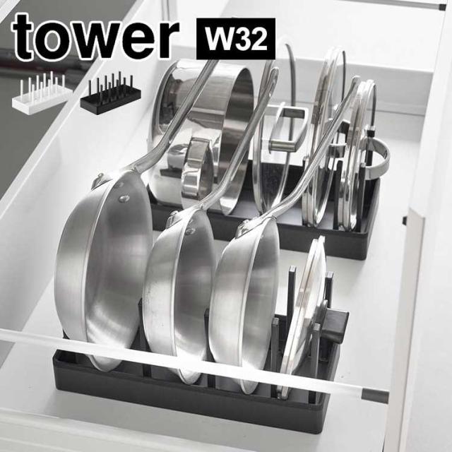 山崎実業 シンク下幅調節鍋蓋&フライパン収納スタンド タワー W32 1359 1360 tower 鍋置き ラック 収納 スタンド 食器 幅 調節可能 フライパンスタンド 縦 鍋スタンド キッチン 仕切り 台所 調理道具 引き出し 立てて収納 おしゃれ ホワイト ブラック フライパン置き なべ