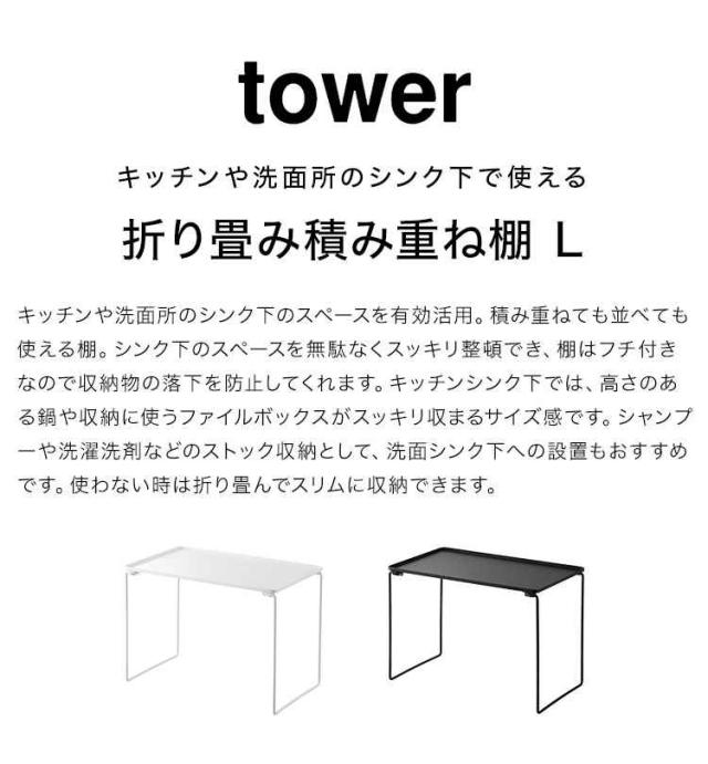 折り畳み積み重ね棚 L 山崎実業 タワー tower シンク下 収納 棚 キッチン 洗面台下 シンク下収納ラック 流し下 スタッキング 奥行24cm 洗面下収納 キッチン用品 シンプル 1369 1370 ホワイト ブラック 整理 収納棚 おしゃれ 台所 サニタリー 公式 1段 折り畳み 丈夫 スチール