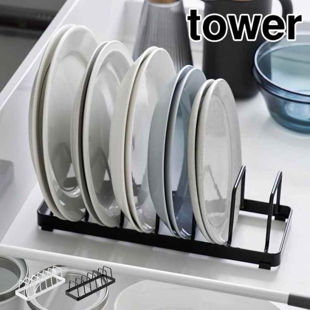 山崎実業 お皿スタンド タワー 1375 1376 tower お皿 収納ラック 一人暮らし シンク下 ディッシュスタンド お皿立て 食器 ラック キッチン 台所 整理整頓 食器棚 平皿 丸皿 小皿 食器立て 仕切り コンパクト シンプル 省スペース 新生活 ホワイト ブラック 取り出しやすい