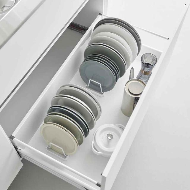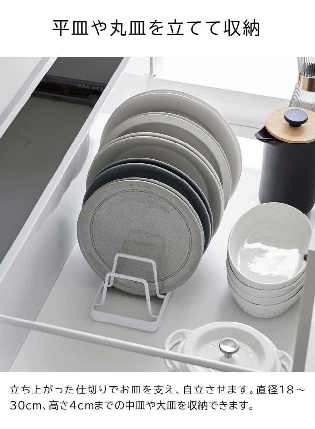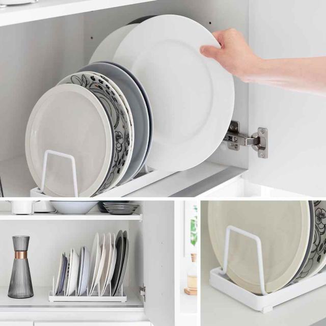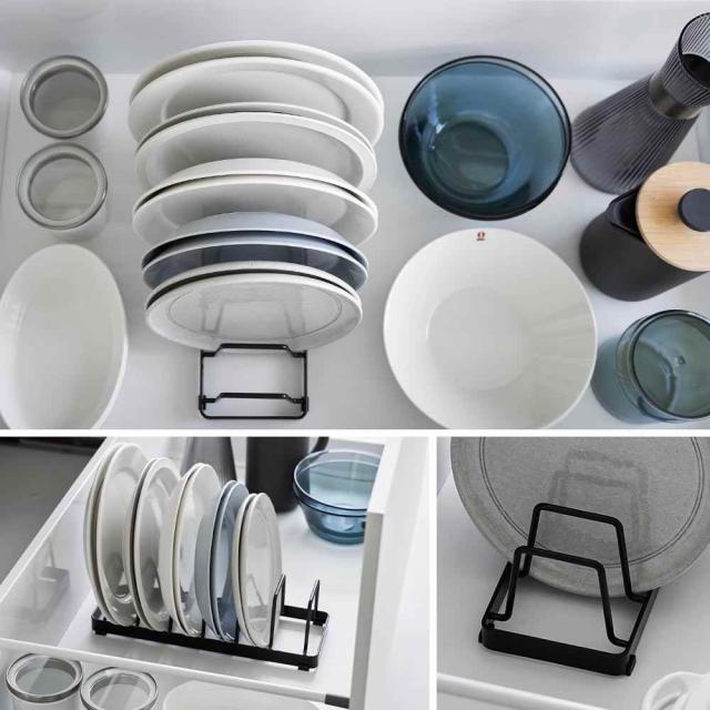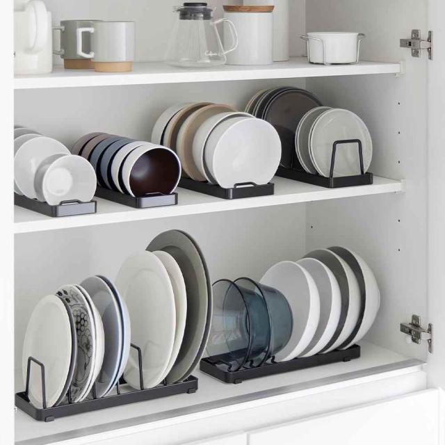 平皿や丸皿を立てて収納できるスタンドです。立てて収納することで食器が選びやすくなり、どの場所にある食器でも使いたい食器を片手で簡単に取り出せます。複数個を使って食器棚や戸棚をすっきり整理整頓するのもおすすめです。