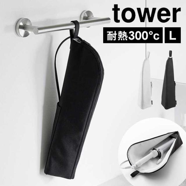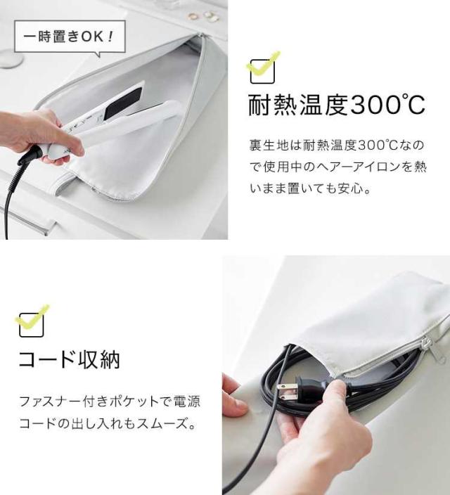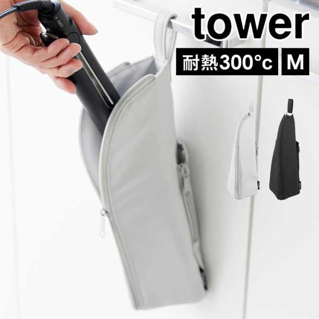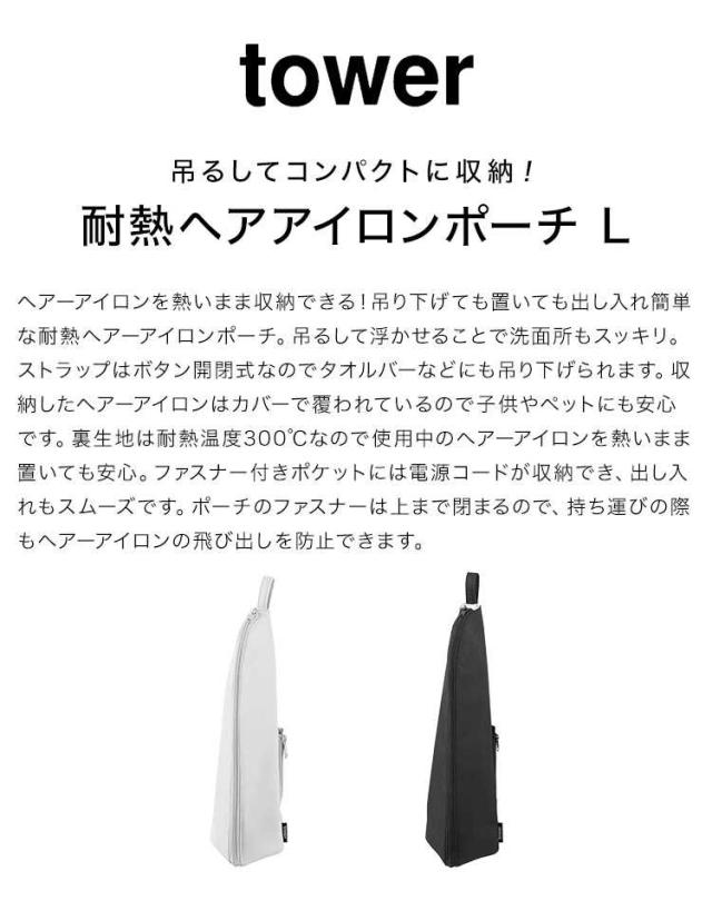 山崎実業 耐熱ヘアーアイロンポーチ タワー L 1383 1384 tower ヘアアイロンケース ポーチ カバー 持ち運び 旅行 スリム 収納 大きめ ファスナー コンパクト 熱いまま コテ ヘアアイロンホルダー トラベル 吊り下げ 引っ掛け 浮かせる 洗面台収納 置き コード収納 シンプル