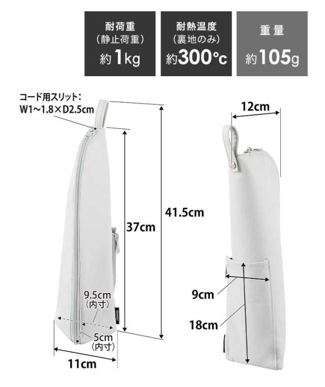 【耐熱ヘアーアイロンポーチL】 ヘアーアイロンを熱いまま収納できる!吊り下げても置いても出し入れ簡単な耐熱ヘアーアイロンポーチ。吊るして浮かせることで洗面所もスッキリ。ストラップはボタン開閉式なのでタオルバーなどにも吊り下げられます。 ■ブランド名 tower / タワー ■JAN 4903208013833/4903208013840 ■品番 1383/1384 ■サイズ 本体:H41.5×W11×D12cm(ストラップ含む) 本体:H37×W11×D12cm(ストラップ含まず) ■重量 約105g ■内寸 底面:W9.5×D5cm コード用スリット:W1〜1.8×D2.5cm ストラップ内周:13cm ポケット:H18×W9cm ■素材 表地:ポリエステル 裏地:グラスファイバー ■耐荷重 1kg(静止荷重) ■耐熱温度 300℃(裏地のみ) ■対応するヘアーアイロン ストレートアイロン・カールアイロン・ブラシ型アイロン ※ヘアーアイロンのサイズや形状によっては収納できない物もあります。 ■生産国 中国 ■ご注意 ※縫製品のため、サイズに若干の個体差が生じることがあります。 レビュー商品の評価: お店の情報お店の評価: 連絡・応対 - 配送スピード - 梱包 - 注目の特集 | |||||||||||||||||