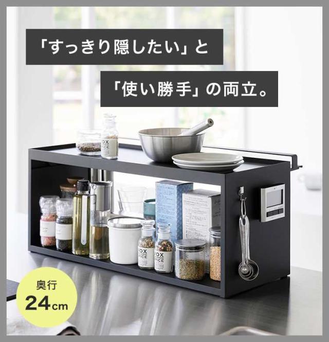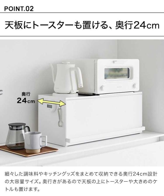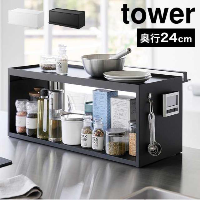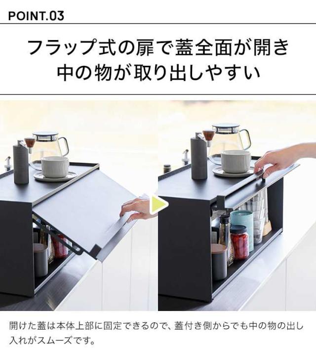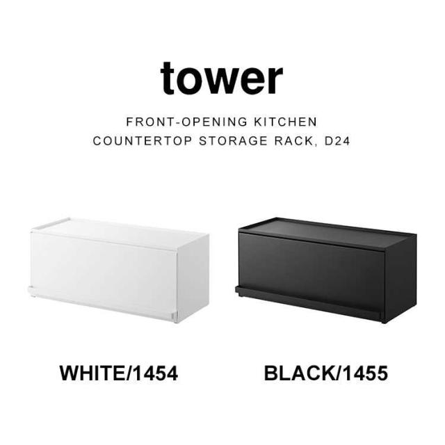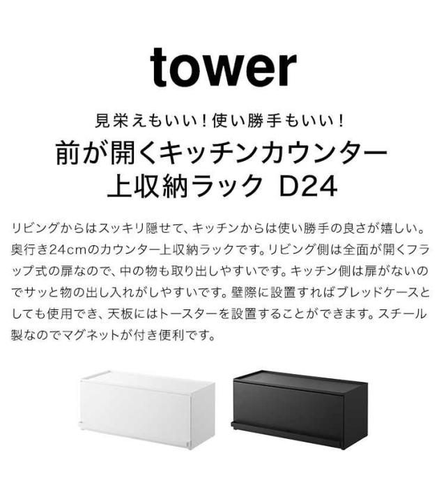 前が開くキッチンカウンター上収納ラック D24 山崎実業 タワー おしゃれ 隠す 大容量 調味料ラック スパイスラック キッチン収納 両面開閉 両面取り出し フラップ扉 片面扉 tower ブレッドケース 扉付き 奥行24 幅60 収納 ラック ケース 棚 ホワイト ブラック 1454 1455 公式