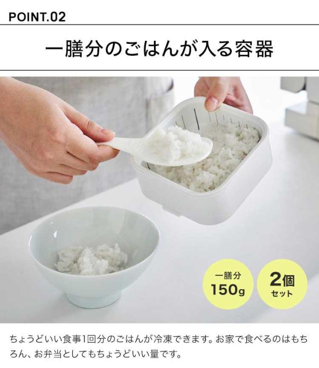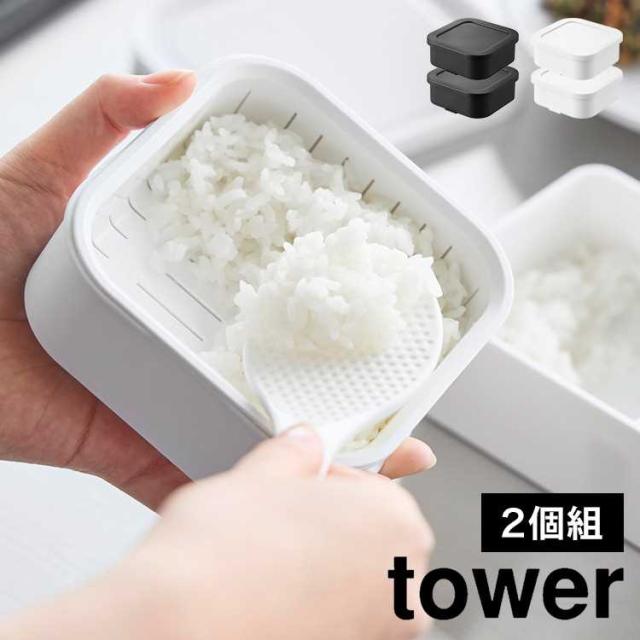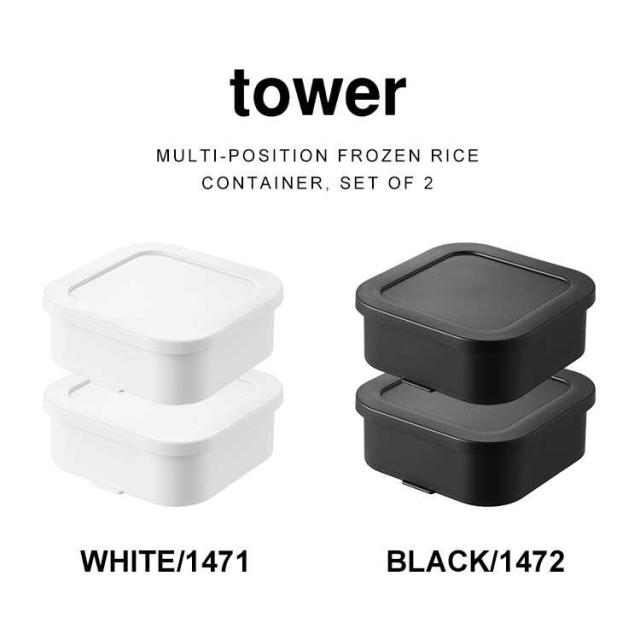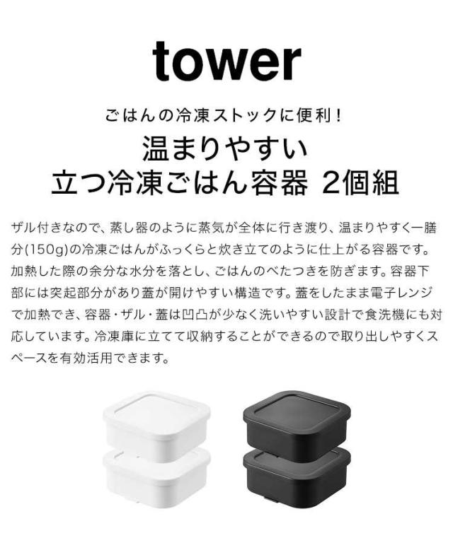 温まりやすい立つ冷凍ごはん容器 一膳 2個組 山崎実業 タワー 2個セット tower お米 冷凍ご飯 保存容器 ごはん 冷凍保存 容器 冷凍ご飯容器 炊き立て ふっくら 小分け 1471 1472 電子レンジ 食洗機 対応 可 2個入り スクエア 型 ホワイト ブラック シンプル 便利 手軽 公式