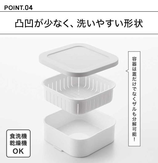 Details 【温まりやすい立つ冷凍ごはん容器 一膳 2個組】 ザル付きなので、蒸し器のように蒸気が全体に行き渡り、温まりやすく一膳分(150g)の冷凍ごはんがふっくらと炊き立てのように仕上がる容器です。加熱した際の余分な水分を落とし、ごはんのべたつきを防ぎます。野菜やシュウマイの蒸し調理の際にも便利です。容器下部には突起部分があり蓋が開けやすい構造です。蓋をしたまま電子レンジで加熱でき、容器・ザル・蓋は凹凸が少なく洗いやすい設計で食器洗い乾燥機にも対応しています。冷凍庫に立てて収納することができるので取り出しやすくスペースを有効活用できます。 ブランド名 tower / タワー JAN 4903208014717 / 4903208014724 品番 1471 / 1472 サイズ 約H4.5×W12.2×D12.2cm(1つあたり) 容量 容器:約380mL ザル:約280mL 重量 約165g 素材 容器・ザル・蓋:ポリプロピレン 耐熱・耐冷温度 耐熱:160℃ 耐冷:-40℃ 加熱時間の目安 500W:2分50秒(ごはん 150gの場合) ※加熱時間はあくまでも目安です。ごはんの状態や、ご使用の電子レンジ、その他諸条件により適切な加熱時間は異なりますので、でき上がり具合を見て調節してください。 生産国 中国 備考 食器洗い乾燥機:可 電子レンジ:可 冷凍庫:可 ご注意 ※表記サイズより、多少の誤差があることがございます。 ※商品の画像はできる限り実物に近づけるよう配慮しておりますが、お使いのモニターやご覧になる環境によりましてはカラーの見え方に差が出る場合がございます。ご了承くださいませ。 関連キーワード 温まりやすい立つ冷凍ごはん容器 一膳 2個組 山崎実業 タワー 2個セット tower お米 冷凍ご飯 保存容器 ごはん 冷凍保存 容器 冷凍ご飯容器 炊き立て ふっくら 小分け 1471 1472 電子レンジ 食洗機 対応 可 2個入り スクエア 型 ホワイト ブラック シンプル 便利 手軽 公式 白 黒 キッチン用品 おしゃれ 150g タッパー 保存 解凍 ごはん 入れ 白米 炊き込みご飯 洗いやすい 分解できる ザル付き コンパクト 省スペース お弁当 そのまま出せる キッチンツール キッチングッズ キッチン雑貨 キッチン アイテム 新生活 yamazaki 山実 やまじつ ヤマジツ やまざきじつぎょう たわー towerシリーズ ブランド インテリアブランド | |||||||||||||