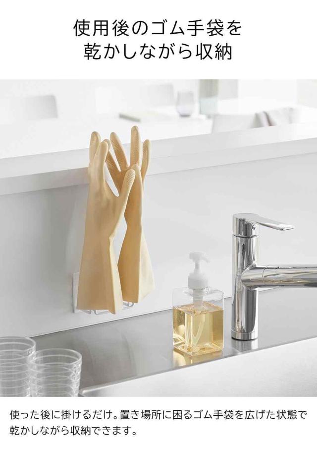 山崎実業 マグネットグローブホルダー タワー 1522 1523 tower ゴム手袋 収納 キッチン 干し 磁石 壁面収納 浮かせる収納 掃除 グッズ 乾かす 乾燥 台所 浴室 バスルーム 衛生的 保存袋 ペットボトル 水筒 スプレーボトル ブラシ 掃除用具 引っ掛け 省スペース コンパクト