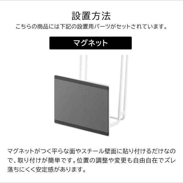 Details 【マグネットグローブホルダー】 マグネットで簡単取り付け。置き場所に困るゴム手袋を収納できるグローブホルダー。シンク中に設置すれば、使用後そのままホルダーに収納するだけで「乾かす・収納」が一度で完結します。スプレーボトルなどの掃除アイテムも引っ掛けることができます。キッチンパネルに設置すれば食品保存袋やペットボトルを乾かす際にも便利です。フックが1つ付属しています。 ブランド名 tower / タワー 品番 1522/1523 サイズ 約H34.2×W11×D9.4cm 重量 約290g 内寸サイズ H33.2×W7.6×D4.1cm 素材 本体:スチール(ユニクロメッキ+粉体塗装) マグネット 滑り止め:シリコーンゴム 付属品 フック 耐荷重 ホルダー1つあたり:500g フック:250g(静止荷重) 使用できる面 マグネットがつく平らな面・スチール面 ※ゴム手袋は付属しておりません。 生産国 中国 ご注意 ※表記サイズより、多少の誤差があることがございます。 ※商品の画像はできる限り実物に近づけるよう配慮しておりますが、お使いのモニターやご覧になる環境によりましてはカラーの見え方に差が出る場合がございます。ご了承くださいませ。 関連キーワード 山崎実業 マグネットグローブホルダー タワー 1522 1523 tower ゴム手袋 収納 キッチン 干し 磁石 壁面収納 浮かせる収納 掃除 グッズ 乾かす 乾燥 台所 浴室 バスルーム 衛生的 保存袋 ペットボトル 水筒 スプレーボトル ブラシ 掃除用具 引っ掛け 省スペース コンパクト 壁掛け ホルダー ホワイト ブラック フック付き 簡単設置 貼り付け 新生活 整理整頓 生活雑貨 白 黒 片付け 楽 便利 時短グッズ 一人暮らし キッチングッズ yamazaki 布巾 ミトン 風通し モノトーン | |||||||||||||