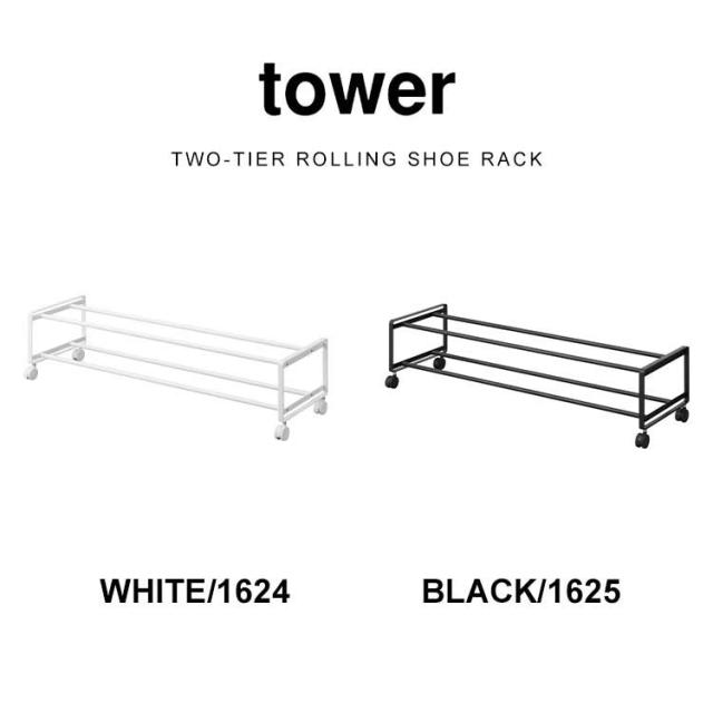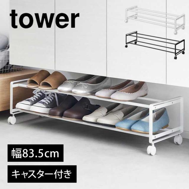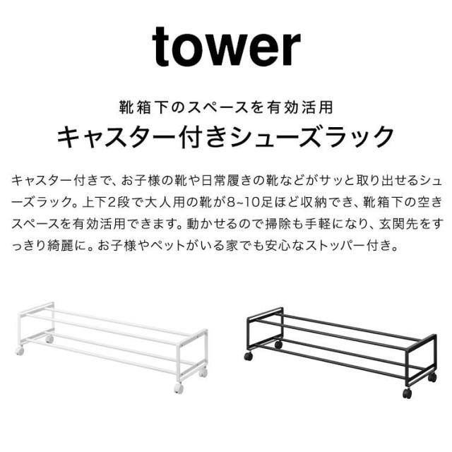 山崎実業 引き出せるキャスター付きシューズラック 2段 タワー tower スリム 省スペース 薄型 大容量 幅80 下駄箱下 靴箱下 玄関 隙間 収納 靴置き 8足 10足 1624 1625 yamazitu 山実 おしゃれ コンパクト スタッキング シンプル スチール ホワイト ブラック 白 黒