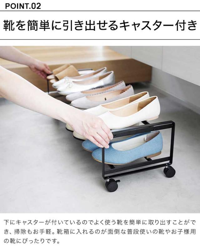 【引き出せるキャスター付きシューズラック 2段】