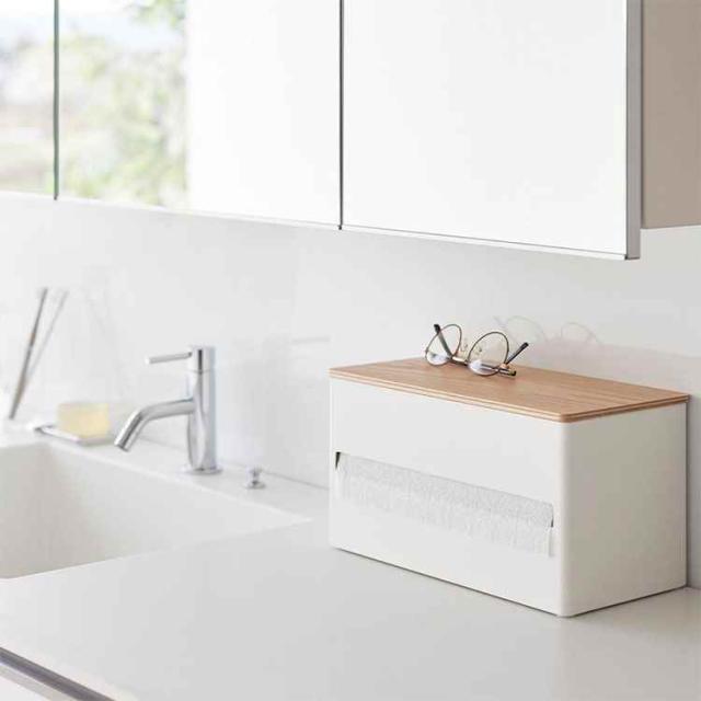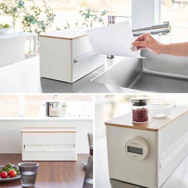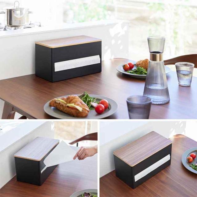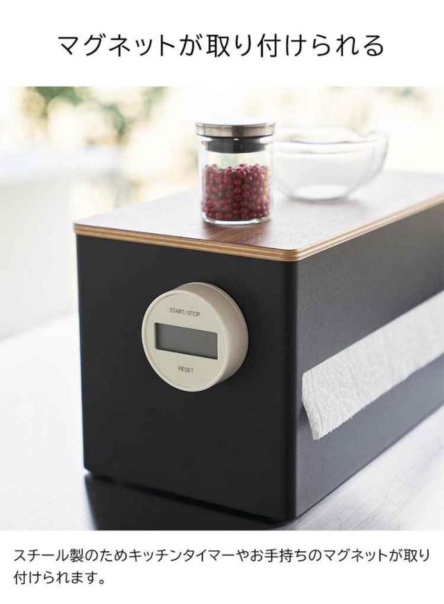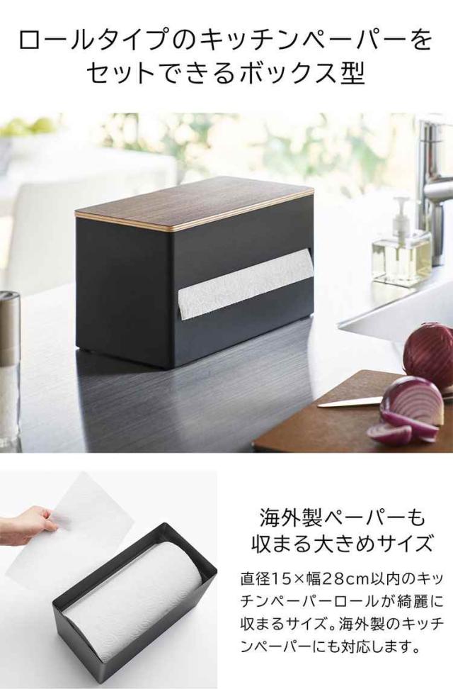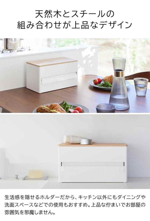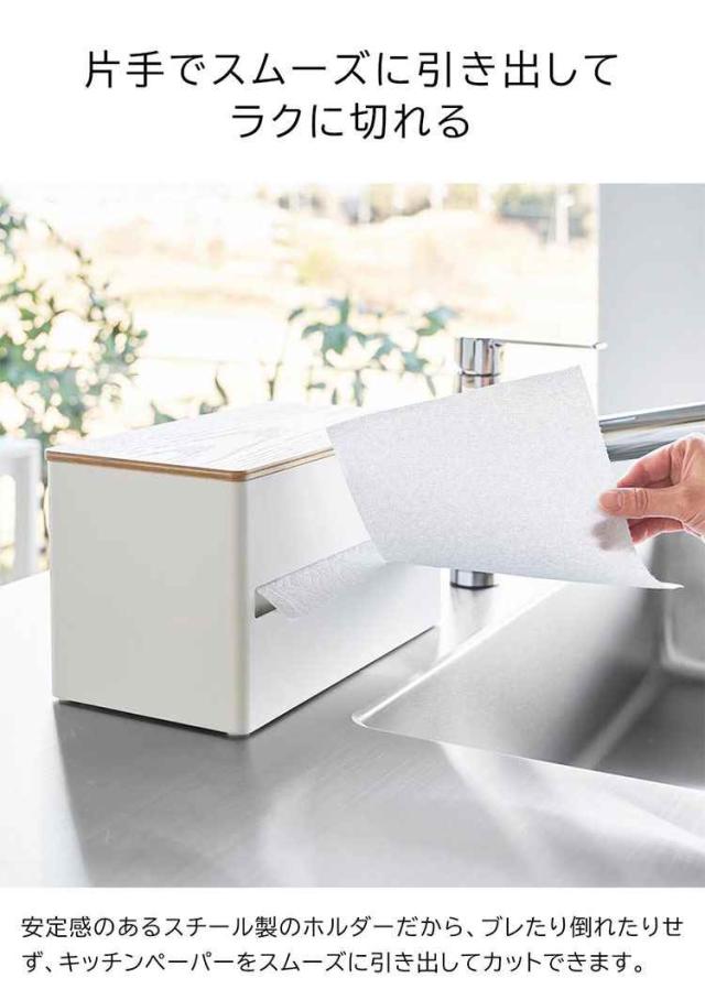 片手でカット隠せるキッチンペーパーホルダー L 山崎実業 リン RIN キッチンペーパーホルダー 木製 片手 大判 北欧 おしゃれ ナチュラル ティッシュケース キッチンペーパー 収納 置き ロールタイプ コストコ 大型 蓋付き 1644 1645 ブラック ホワイト ペーパータオル ケース