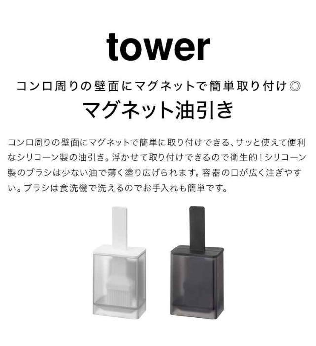 マグネット油引き 山崎実業 タワー シリコーン シリコン オイルボトル オイルケース オイルポット 油引き オイルブラシ tower 食洗機対応 洗える 便利 料理 調理 磁石 油 ソース 塗る 調理器具 キッチンツール ホワイト ブラック 1676 1677 ホットプレート たこ焼き シンプル