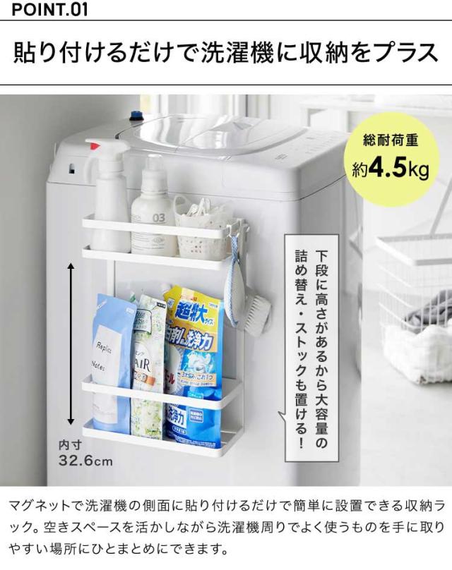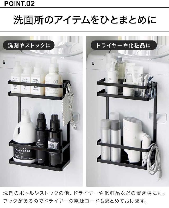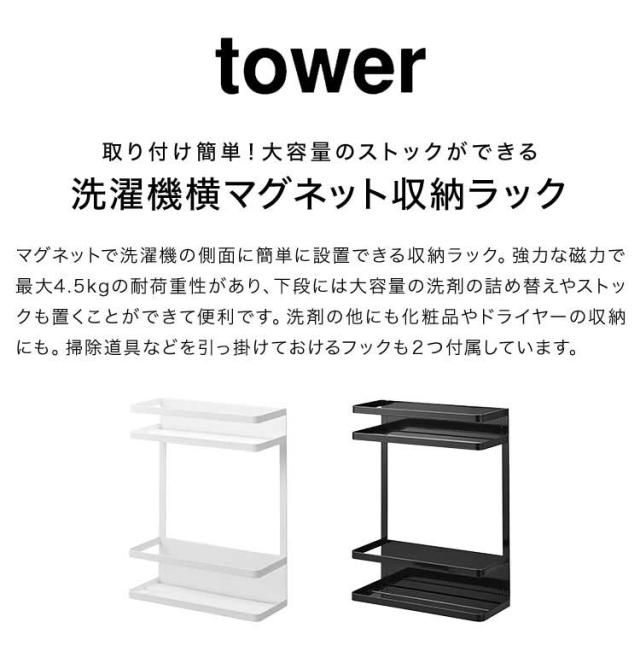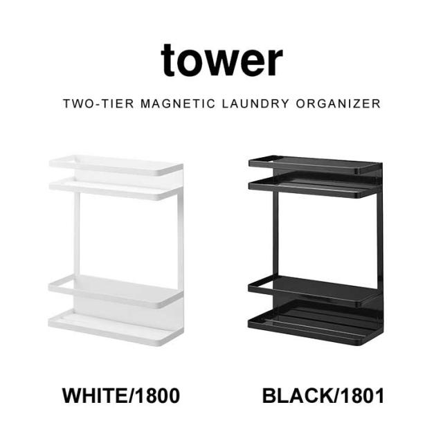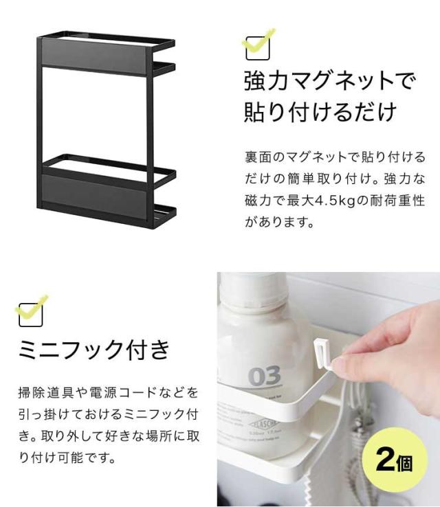 山崎実業 洗濯機横マグネット収納ラック 2段 タワー tower 洗濯機 マグネット 収納 洗剤 置き場 ストッカー ランドリー 省スペース 隙間収納 1800 1801 yamazitu 山実 フック 大容量 棚 磁石 貼り付け 引っ掛け 浮かせる おしゃれ シンプル 白 黒 ブラック ホワイト