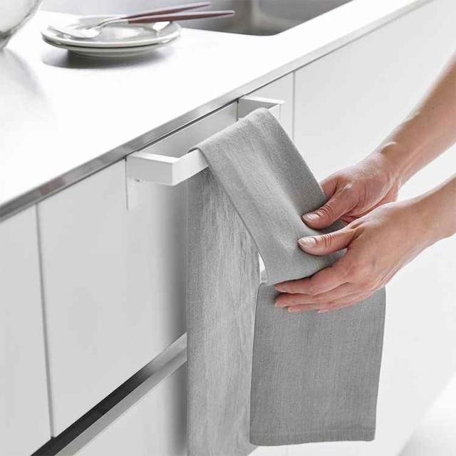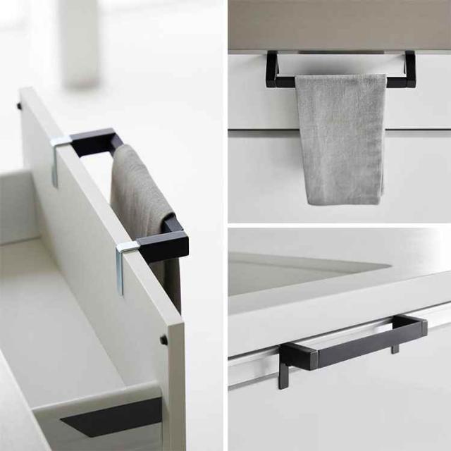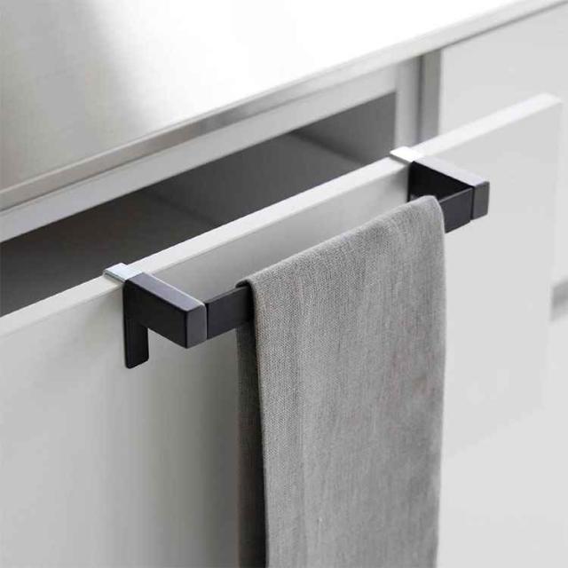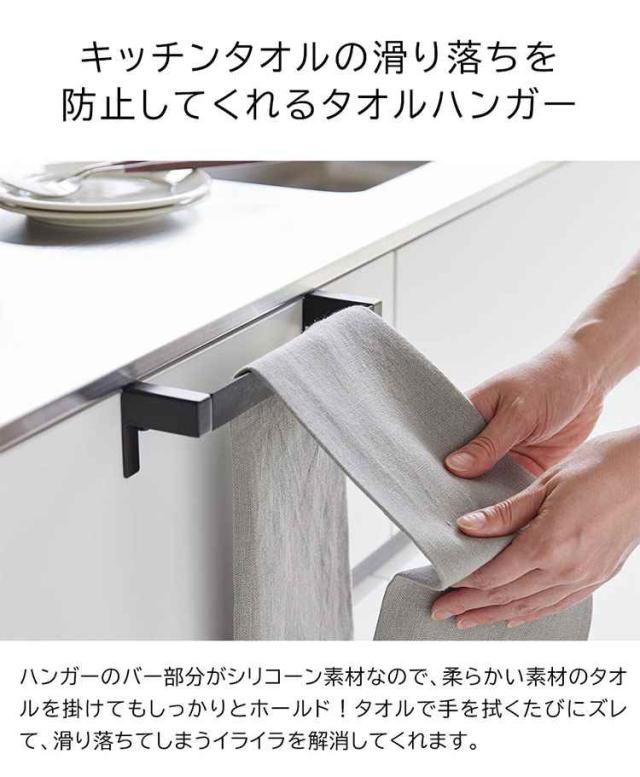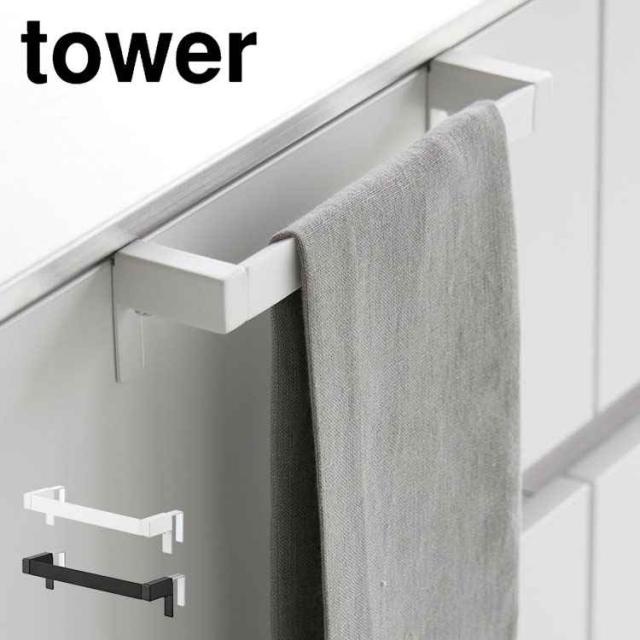 滑り落ち防止キッチンタオルハンガーバー 山崎実業 タワー タオルハンガー キッチン タオル掛け タオル干し タオルバー ふきん掛け 台拭き グッズ 便利 引き出し 扉 引っ掛け tower ホワイト ブラック 1808 1809 滑りにくい ずれない シンク下 おしゃれ シンプル 白 黒